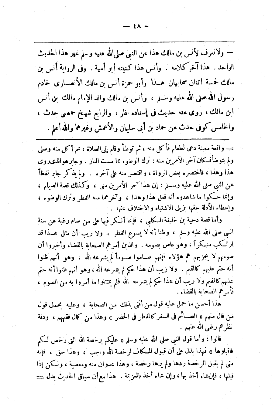 واقعة معينة دعي لطعام فأكل منه ثم توضأ وقام إلى الصلاة ثم أكل منه وصلى ولم يتوضأ فكان اخر الأمرين منه ترك الوضوء مما مست النار