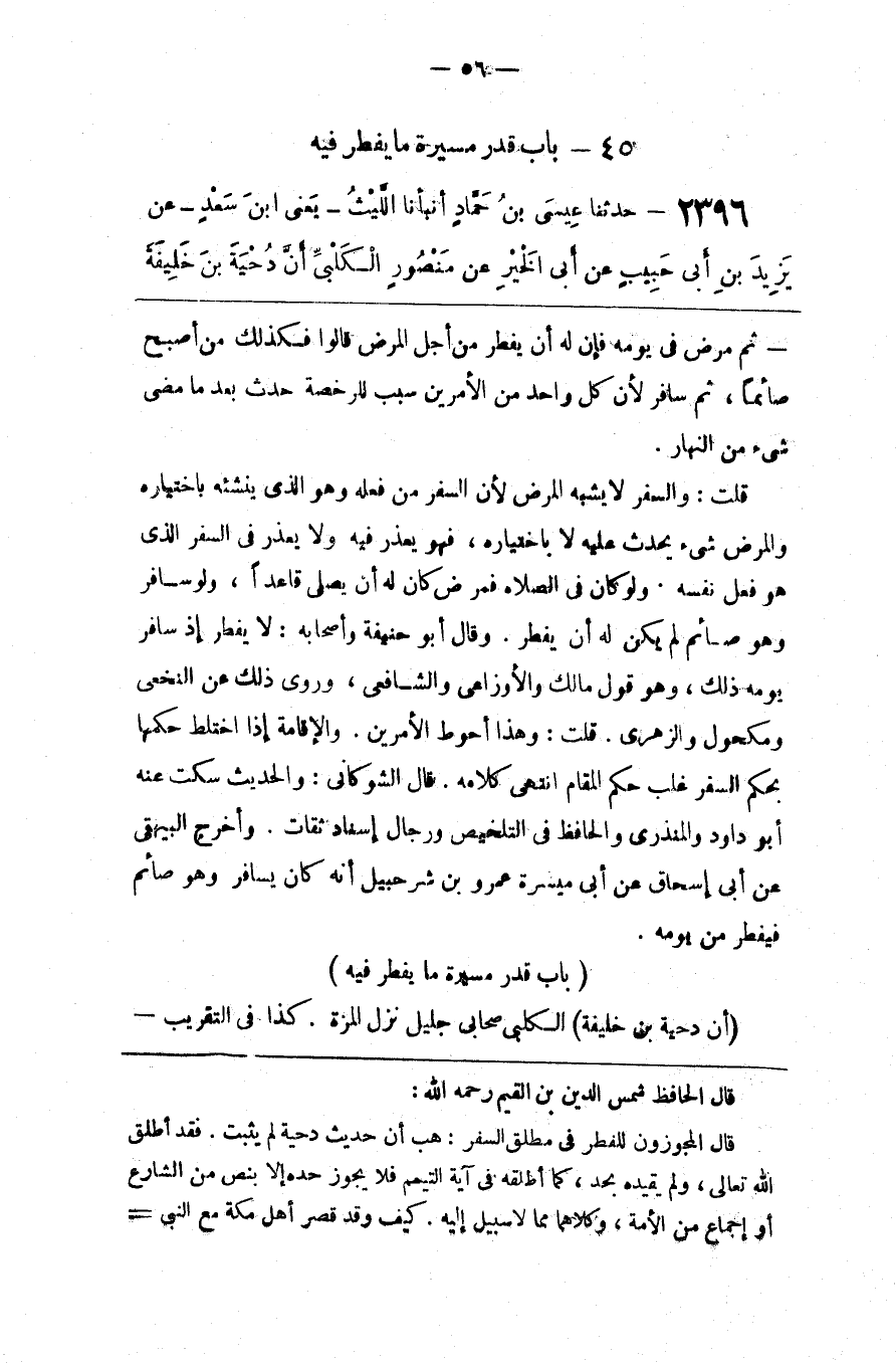 قال الحافظ شمس الدين بن القيم رحمه الله قال المجوزون للفطر في مطلق السفر هب أن حديث دحية لم يثبت