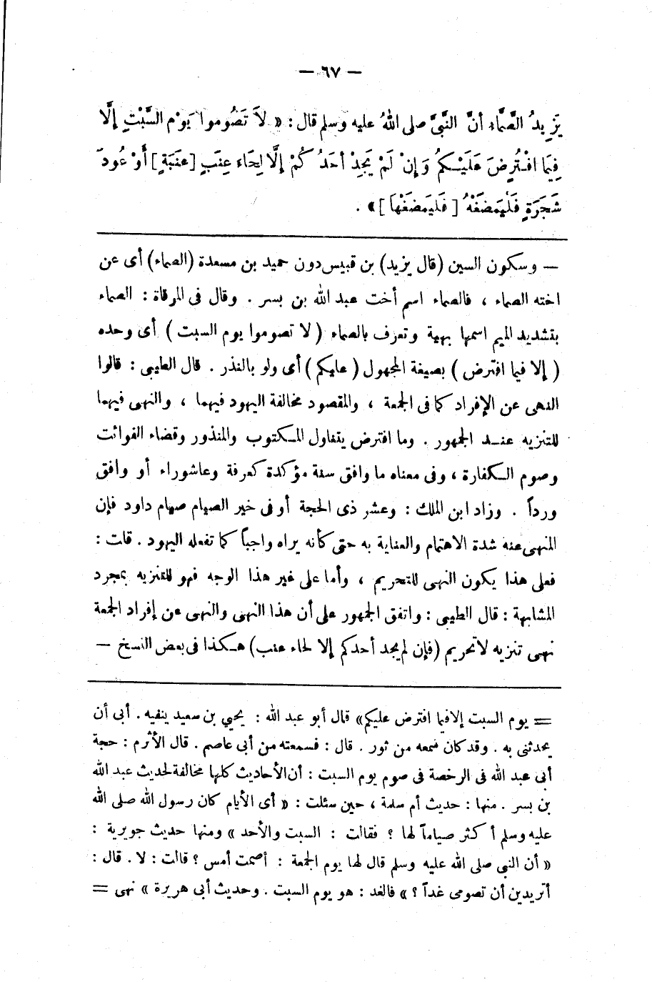 قال الأثرم حجة أبي عبد الله في الرخصة في صوم يوم السبت أن الأحاديث كلها مخالفة لحديث عبد الله بن بسر