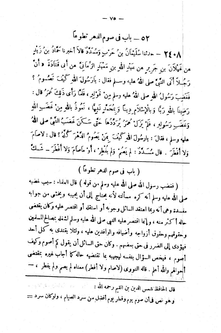 قال الحافظ شمس الدين بن القيم رحمه الله وهو نص في أن صوم يوم وفطر يوم أفضل من سرد الصيام ولو كان سرد