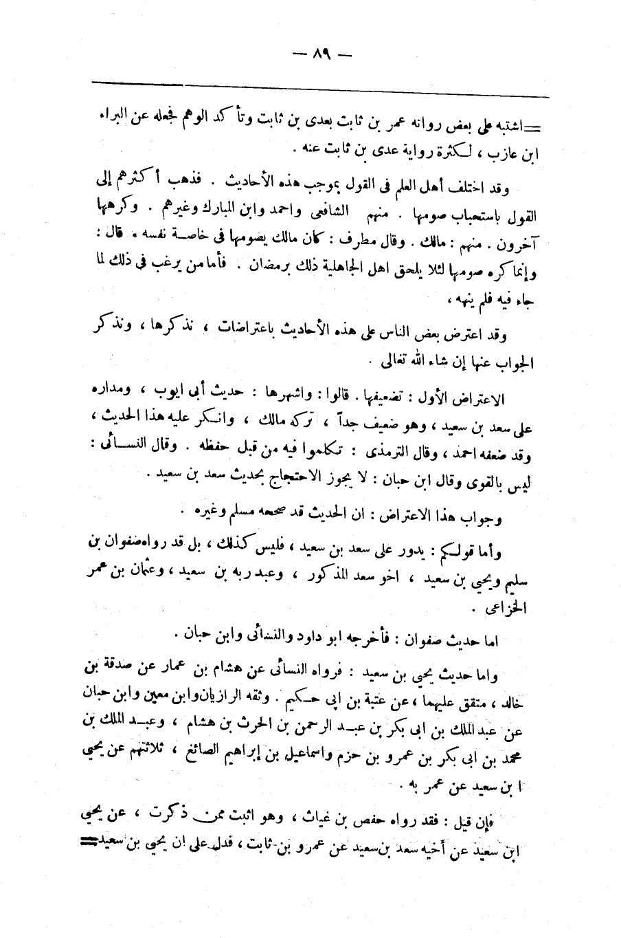 وأما قولكم يدور على سعد بن سعيد فليس كذلك بل قد رواه صفوان بن سليم ويحيى بن سعيد اخو سعد المذكور وعبد ربه بن سعيد وعثمان بن عمر الخزاعي