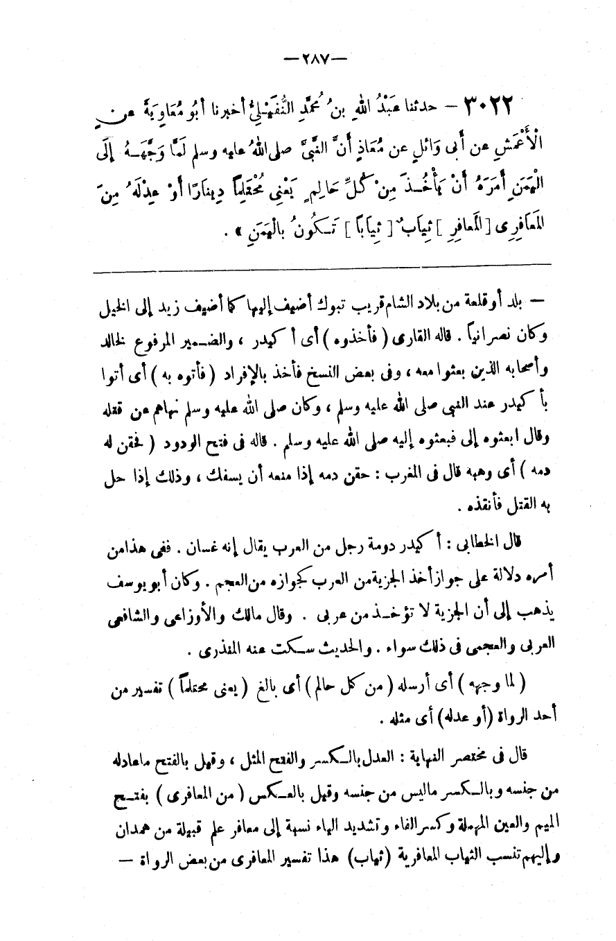 قَالَ الْخَطَّابِيُّ : أُكَيْدِر دَوْمَة رَجُل مِنْ الْعَرَب يُقَال إِنَّهُ غَسَّان . فَفِي هَذَا مِنْ أَمْره دَلَالَة عَلَى جَوَاز أَخْذ الْجِزْيَة مِنْ الْعَرَب كَجَوَازِهِ مِنْ الْعَجَم . وَكَانَ أَبُو يُوسُف يَذْهَب إِلَى أَنَّ الْجِزْيَة لَا تُؤْخَذ مِنْ عَرَبِيّ . وَقَالَ مَالِك وَالْأَوْزَاعِيُّ وَالشَّافِعِيّ الْعَرَبِيّ وَالْعَجَمِيّ فِي ذَلِكَ سَوَاء . وَالْحَدِيث سَكَتَ عَنْهُ الْمُنْذِرِيُّ .