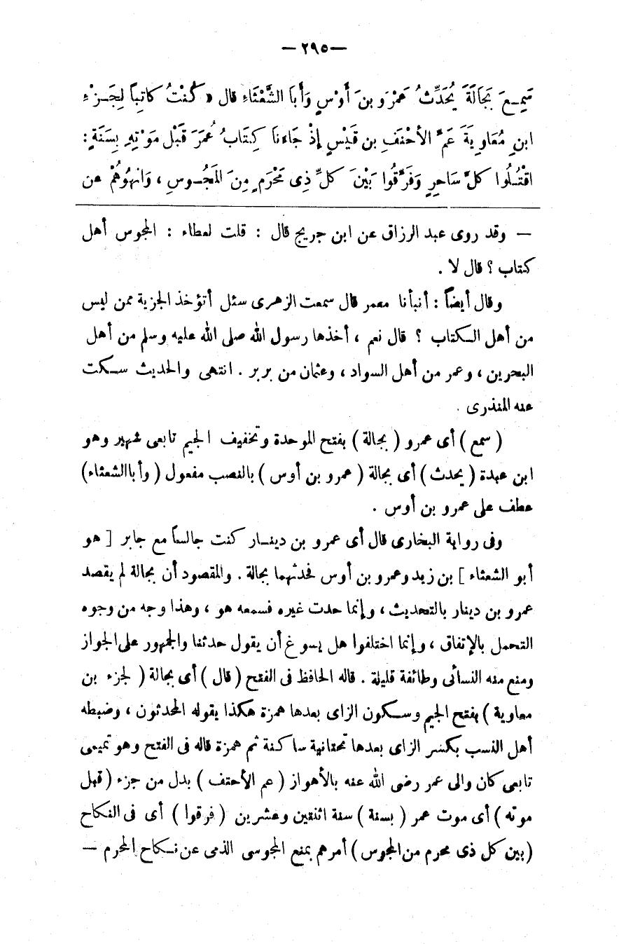 وَقَالَ أَيْضًا : أَنْبَأَنَا مَعْمَر قَالَ سَمِعْت الزُّهْرِيّ سُئِلَ أَتُؤْخَذُ الْجِزْيَة مِمَّنْ لَيْسَ مِنْ أَهْل الْكِتَاب ؟ قَالَ نَعَمْ ، أَخَذَهَا رَسُول اللَّه صَلَّى اللَّه عَلَيْهِ وَسَلَّمَ مِنْ أَهْل الْبَحْرَيْنِ ، وَعُمَر مِنْ أَهْل السَّوَاد ، وَعُثْمَان مِنْ بَرْبَر . اِنْتَهَى وَالْحَدِيث سَكَتَ عَنْهُ الْمُنْذِرِيُّ .