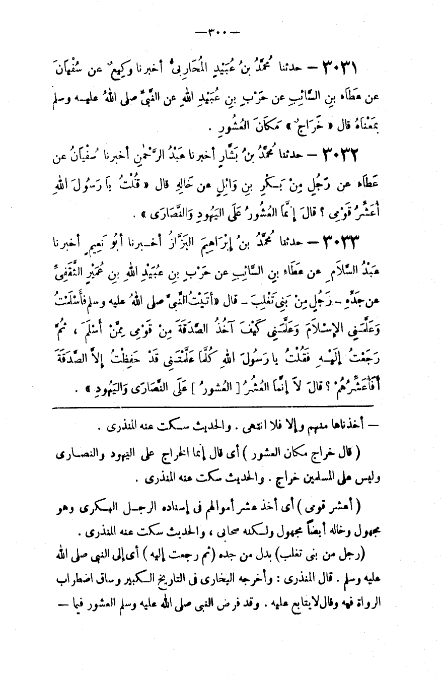 قَالَ الْمُنْذِرِيُّ : وَأَخْرَجَهُ الْبُخَارِيّ فِي التَّارِيخ الْكَبِير وَسَاقَ اِضْطِرَاب الرُّوَاة فِيهِ وَقَالَ لَا يُتَابَع عَلَيْهِ : وَقَدْ فَرَضَ النَّبِيّ صَلَّى اللَّه عَلَيْهِ وَسَلَّمَ الْعُشُور فِيمَا@