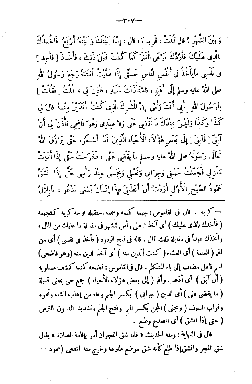 قَالَ فِي النِّهَايَة : وَمِنْهُ الْحَدِيث " فَلَمَّا شَقَّ الْفَجْرَانِ أَمَرَ بِإِقَامَةِ الصَّلَاة " يُقَال شَقَّ الْفَجْر وَانْشَقَّ إِذَا طَلَعَ كَأَنَّهُ شَقَّ مَوْضِع طُلُوعه وَخَرَجَ مِنْهُ اِنْتَهَى