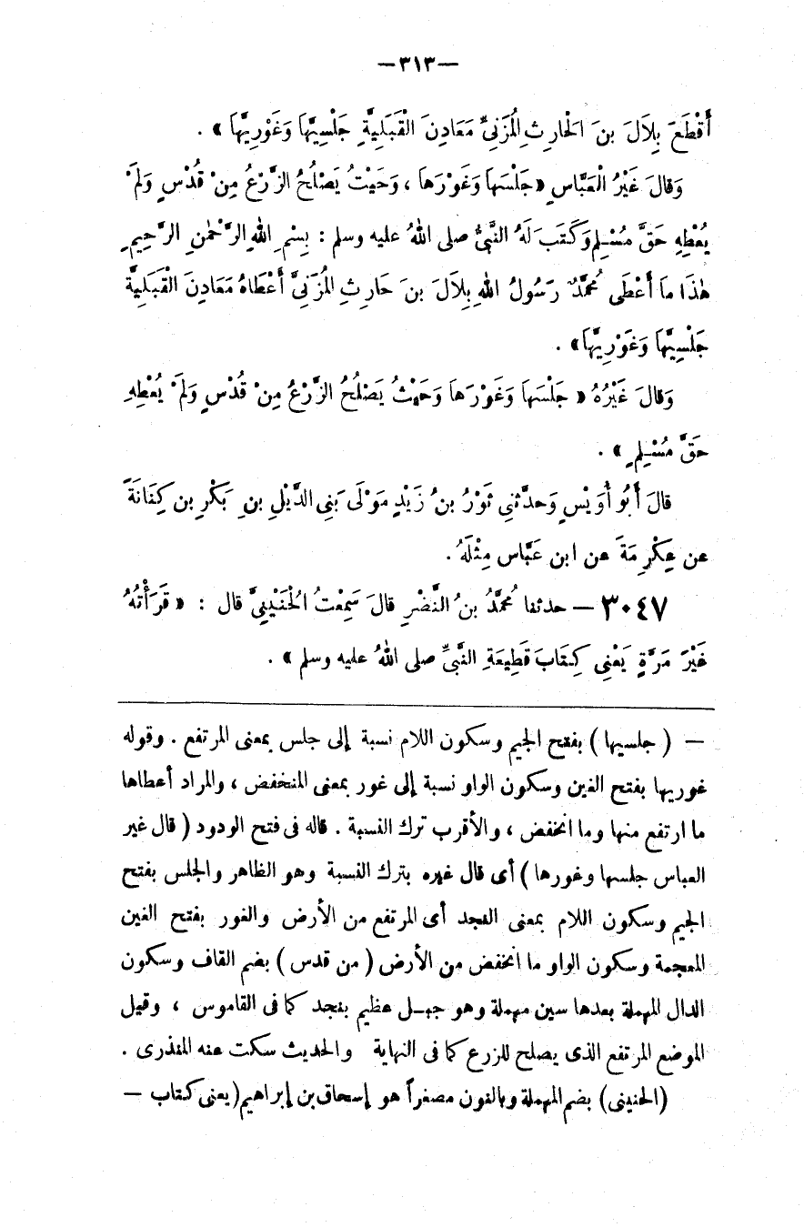 : بِفَتْحِ الْجِيم وَسُكُون اللَّام نِسْبَة إِلَى جَلْس بِمَعْنَى الْمُرْتَفِع . وَقَوْله غَوْرِيَّهَا بِفَتْحِ الْغَيْن وَسُكُون الْوَاو نِسْبَة إِلَى غَوْر بِمَعْنَى الْمُنْخَفِض ، وَالْمُرَاد أَعْطَاهُ مَا اِرْتَفَعَ مِنْهَا وَمَا اِنْخَفَضَ ، وَالْأَقْرَب تَرْك النِّسْبَة . قَالَهُ فِي الْفَتْح الْوَدُود