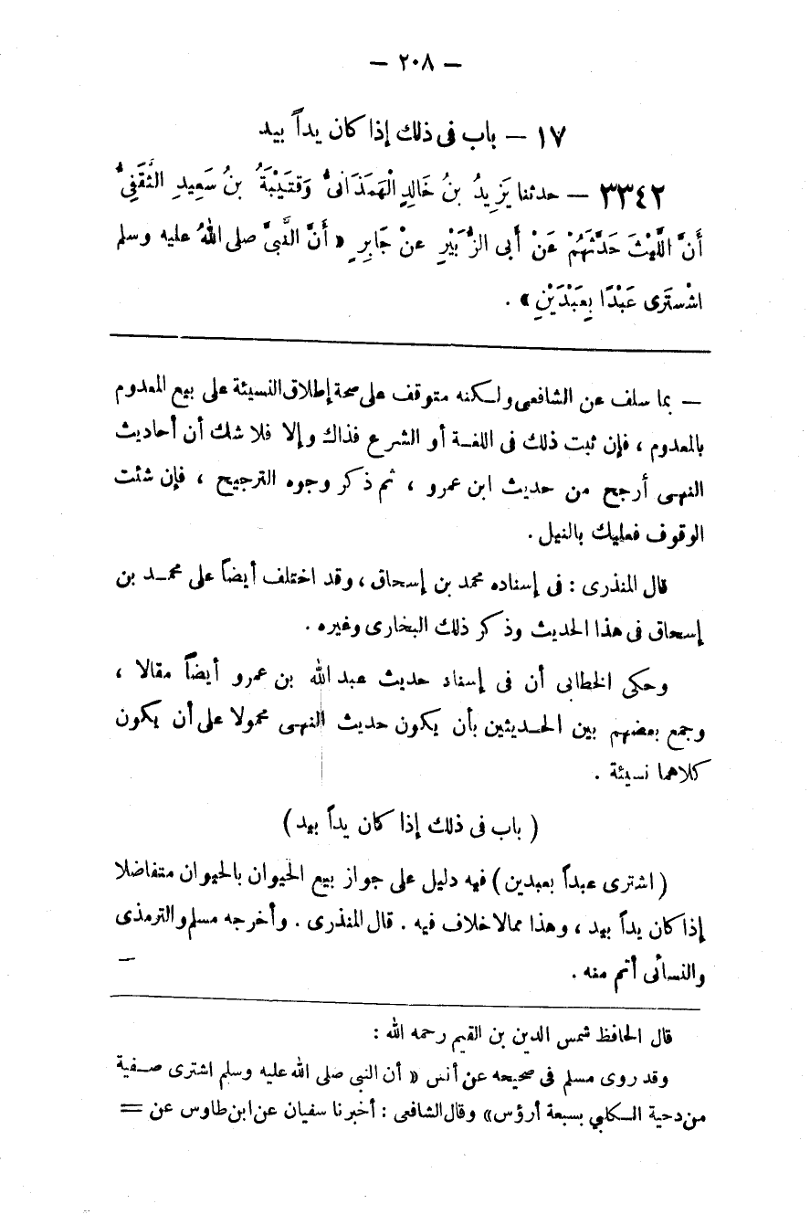 قال الحافظ شمس الدين بن القيم رحمه الله وقد روى مسلم في صحيحه عن أنس أن النبي صلى الله عليه و سلم اشترى صفية من دحية الكلبي بسبعة أرؤس وقال الشافعي أخبرنا سفيان عن ابن طاووس عن