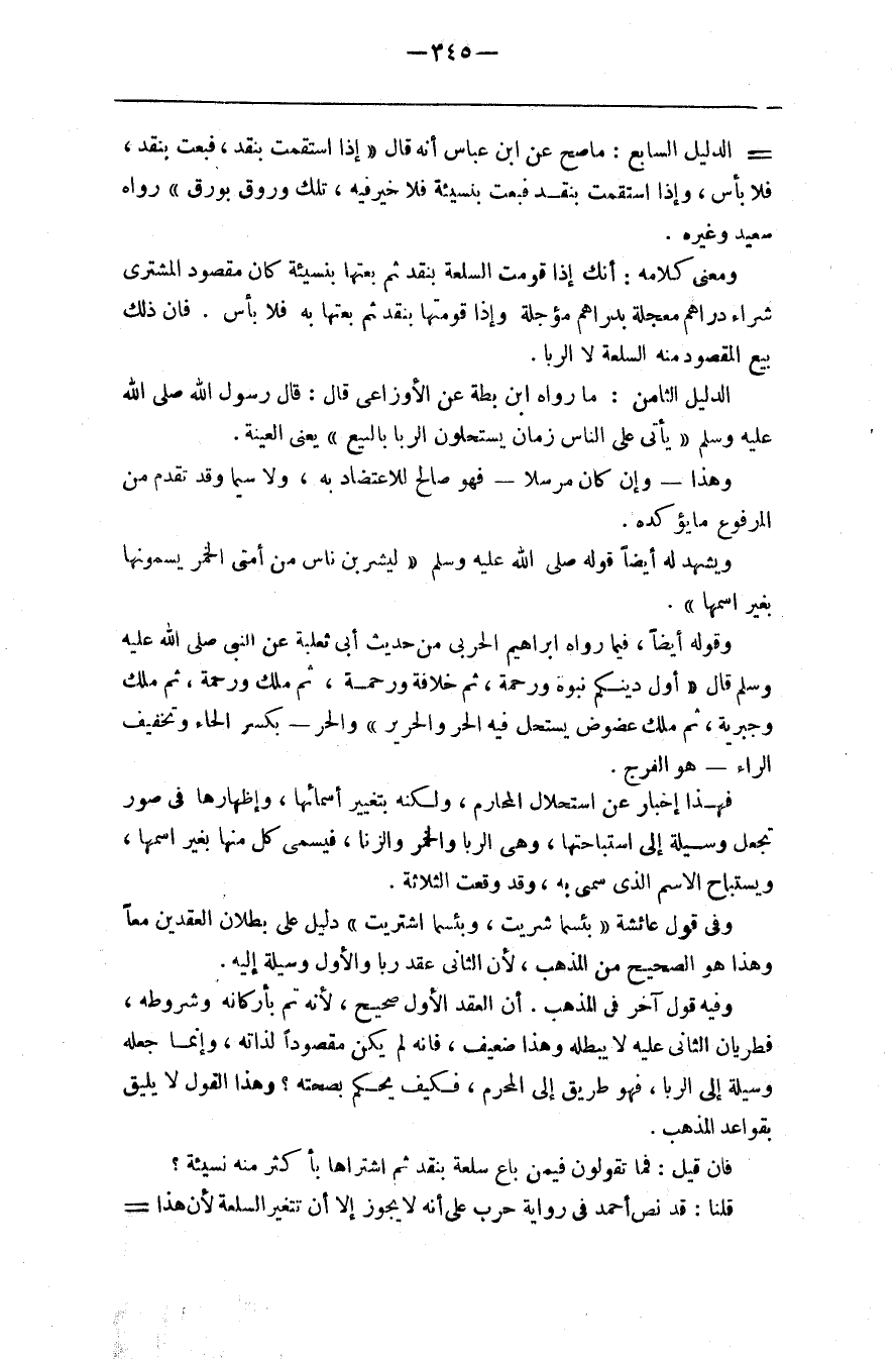 الدليل السابع ما صح عن ابن عباس أنه قال إذا استقمت بنقد فبعت بنقد فلا بأس وإذا استقمت بنقد فبعت بنسيئة فلا خير فيه تلك وروق بورق رواه سعيد وغيره