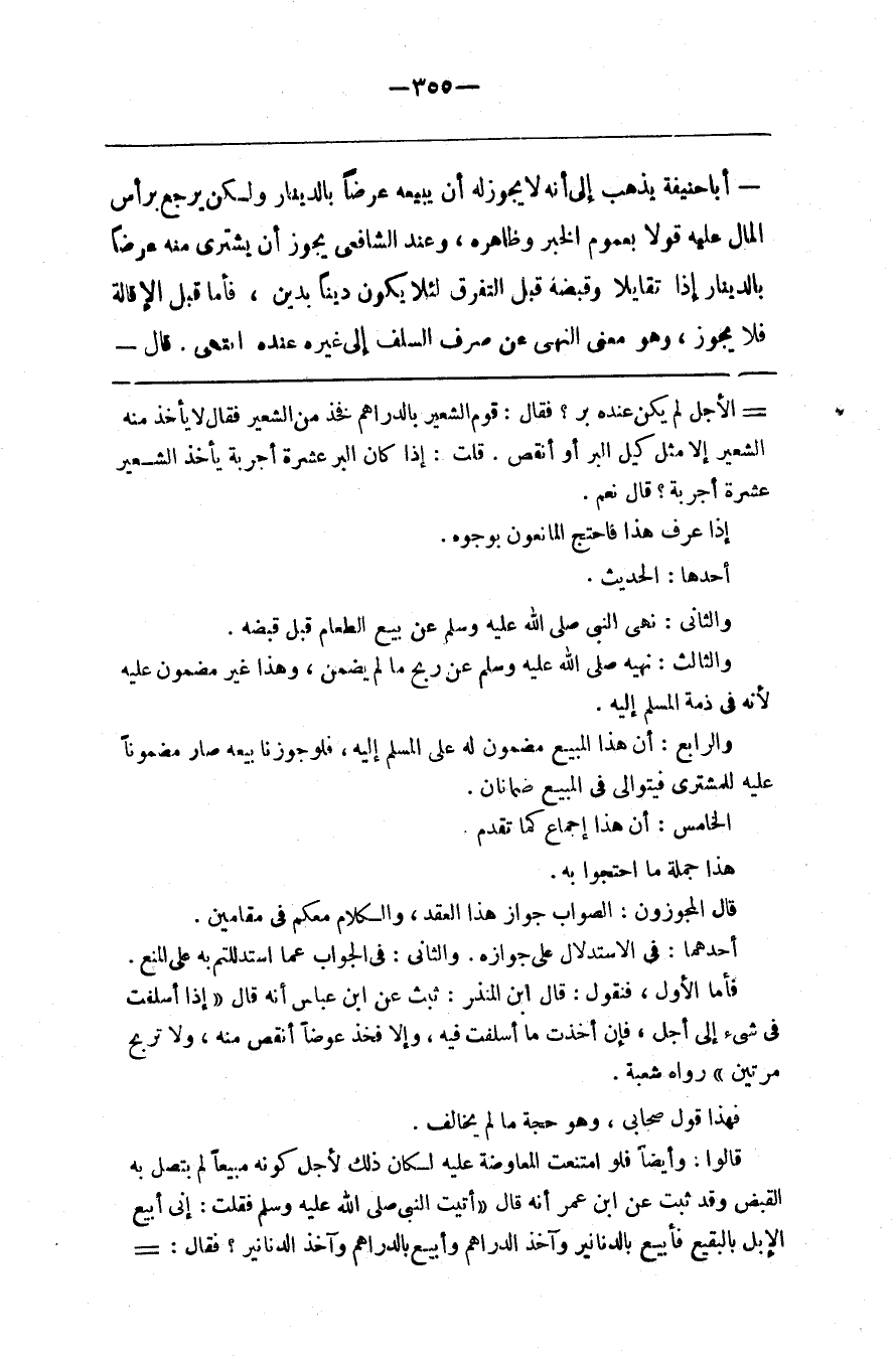 فأما الأول فنقول قال ابن النمذر ثبث عن ابن عباس أنه قال إذا أسلفت في شيء إلى أجل فإن أخذت ما أسلفت فيه وإلا فخذ عوضا أنقص منه ولا تربح مرتين رواه شعبة