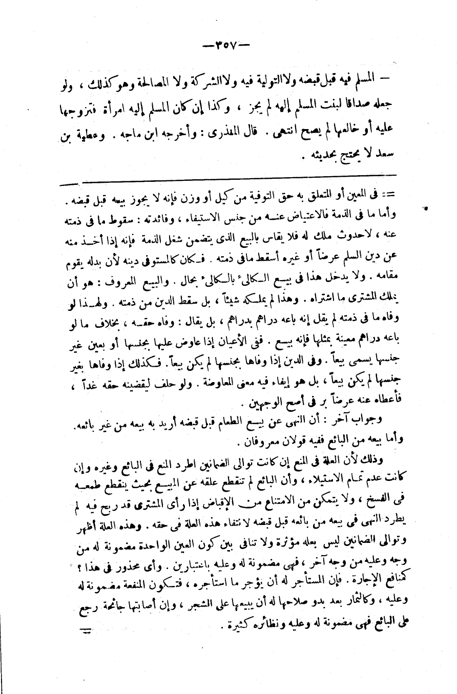 في المعين أو المتعلق به حق التوفية من كيل أو وزن فإنه لا يجوز بيعه قبل قبضه