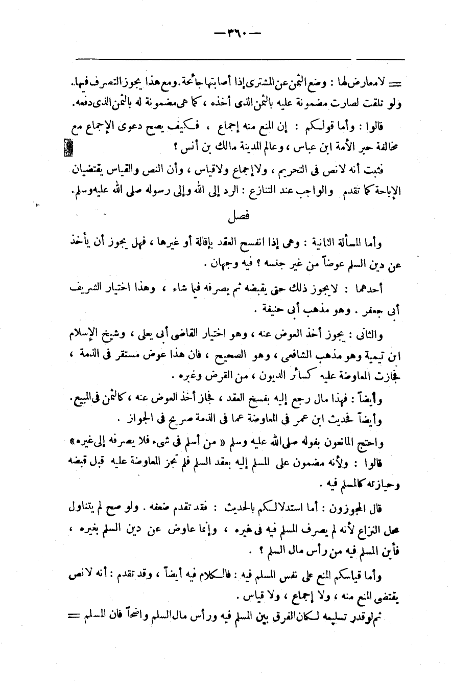 وأما قياسكم المنع على نفس المسلم فيه فالكلام فيه أيضا وقد تقدم أنه لا نص يقتضي المنع منه ولا إجماع ولا قياس