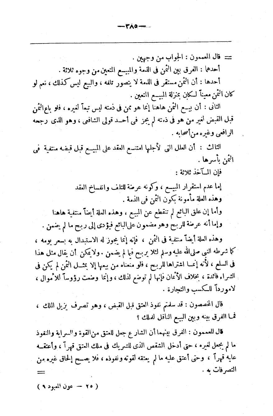 فإن المآخذ ثلاثة إما عدم استقرار المبيع وكونه عرضه للتلف وانفساخ العقد وهذه العلة مأمونة بكون الثمن في الذمة