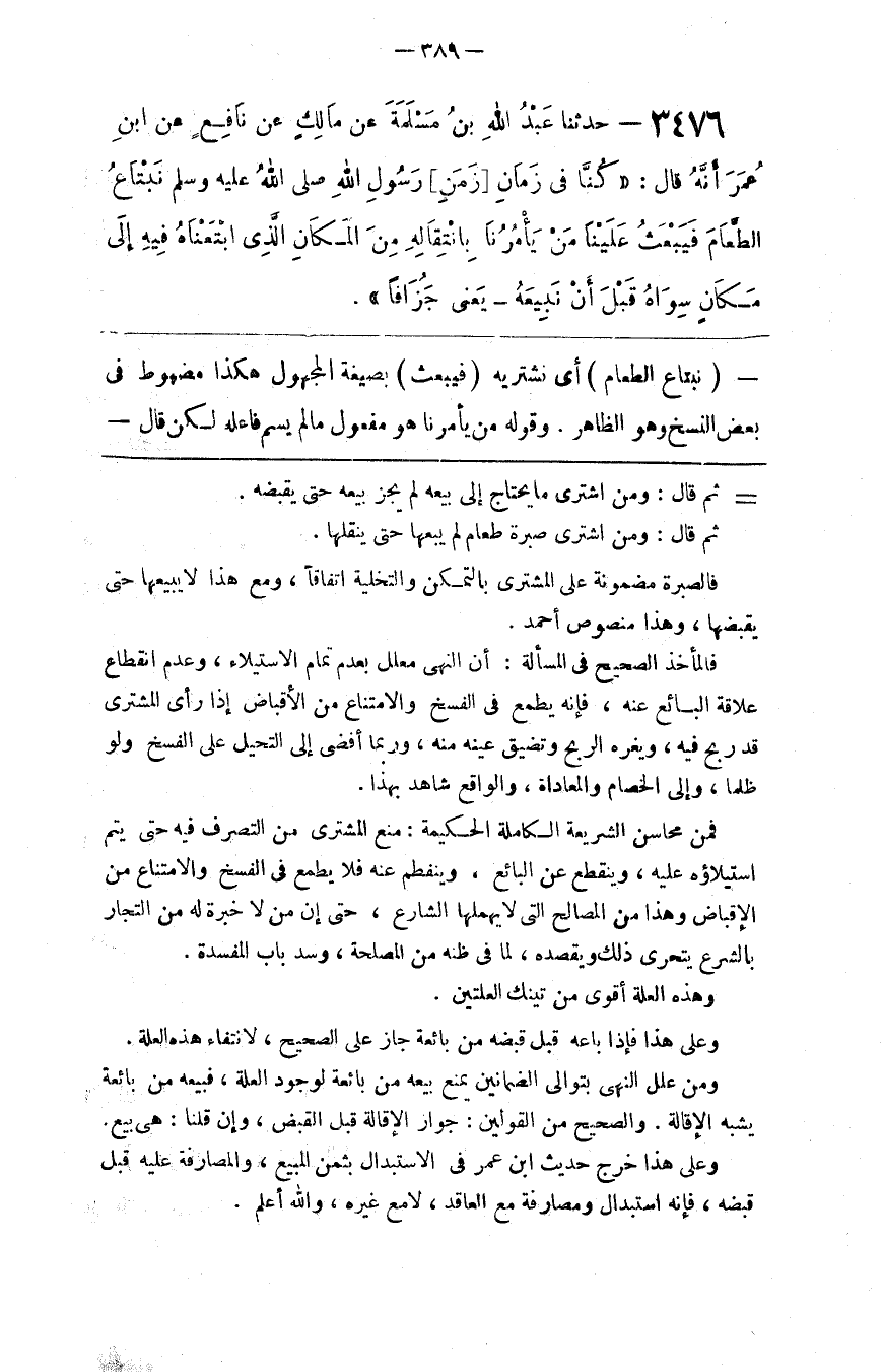 ثم قال ومن اشترى صبرة طعام لم يبعها حتى ينقلها