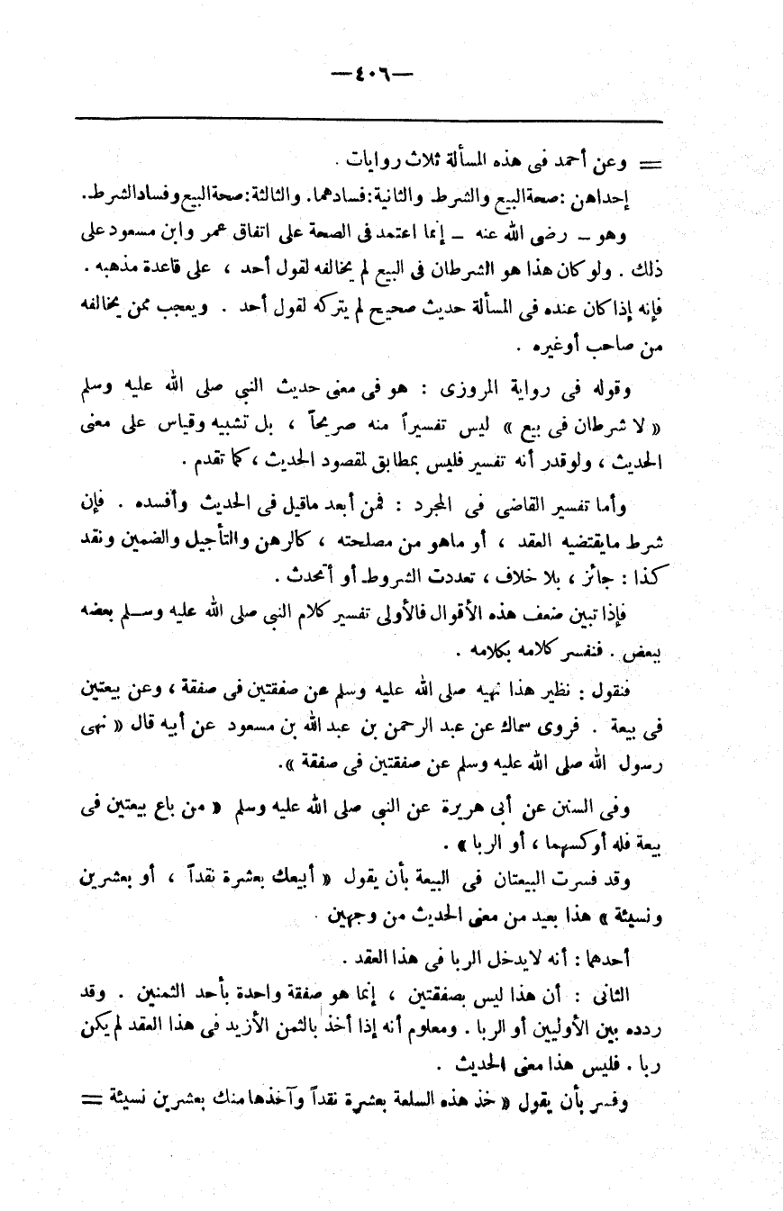 فروى سماك عن عبدالرحمن ابن عبد الله بن مسعود عن أبيه قالنهى رسول الله عن صفقتين في صفقة