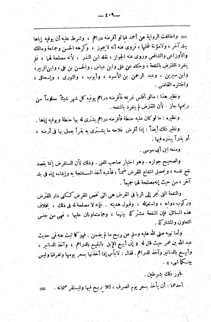 واختلفت الرواية عن أحمد فيما لو أقرضه دراهم وشرط عليه أن يوفيه إياها ببلد إخر ولا مؤنة لحملها فروى عنه أنه لا يجوز وكرهه الحسن وجماعة ومالك والأوزاعي والشافعي وروي عنه الجواز