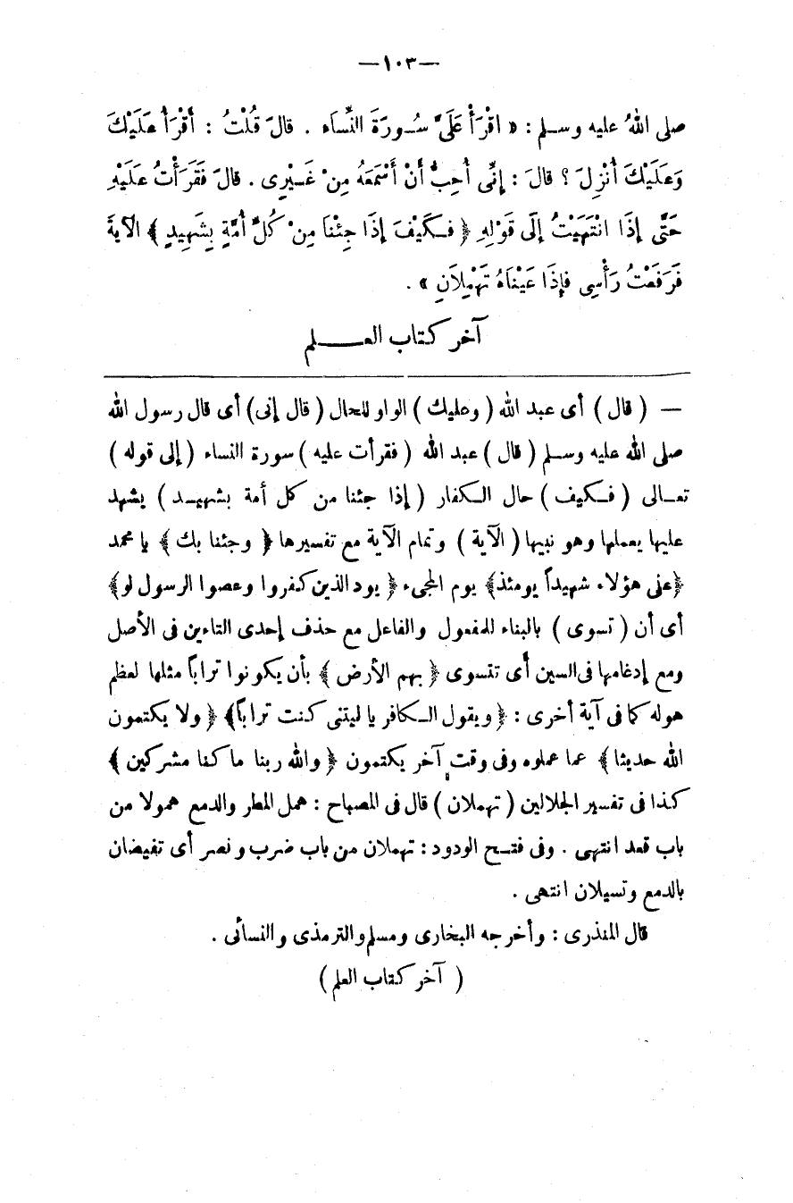 قَالَ الْمُنْذِرِيُّ : وَأَخْرَجَهُ الْبُخَارِيّ وَمُسْلِم وَالتِّرْمِذِيّ وَالنَّسَائِيُّ . آخِر كِتَاب الْعِلْم@