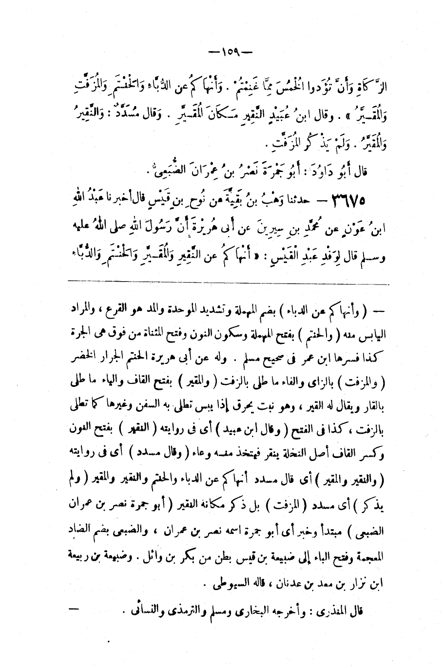 : أَيْ قَالَ مُسَدَّد أَنْهَاكُمْ عَنْ الدُّبَّاء وَالْحَنْتَم وَالنَّقِير وَالْمُقَيَّر