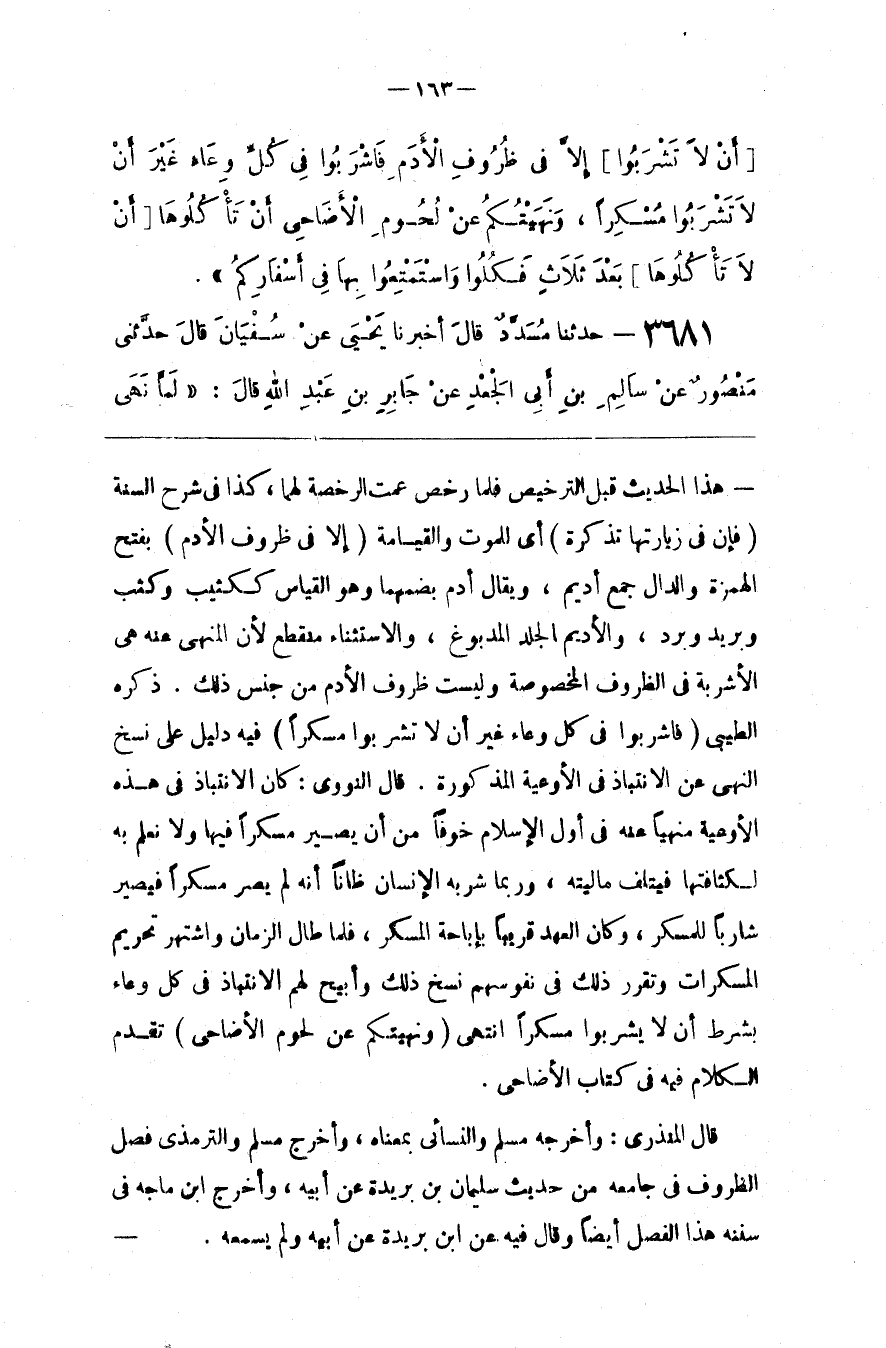 ( فَاشْرَبُوا فِي كُلّ وِعَاء غَيْر أَنْ لَا تَشْرَبُوا مُسْكِرًا )