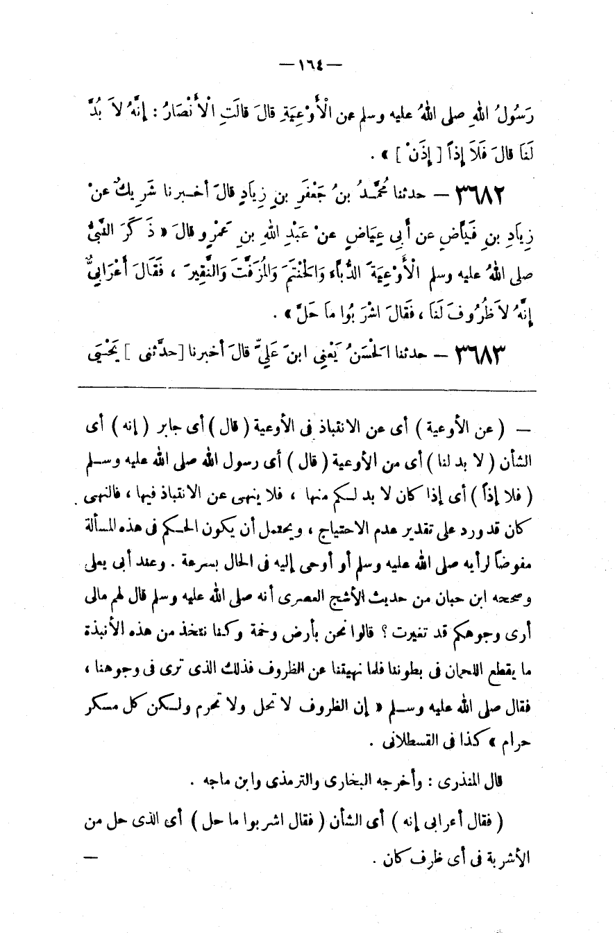 : أَيْ إِذَا كَانَ لَا بُدّ لَكُمْ مِنْهَا ، فَلَا يُنْهَى عَنْ الِانْتِبَاذ فِيهَا ، فَالنَّهْي كَانَ قَدْ وَرَدَ عَلَى تَقْدِير عَدَم الِاحْتِيَاج ، وَيَحْتَمِل أَنْ يَكُون الْحُكْم فِي هَذِهِ الْمَسْأَلَة مُفَوَّضًا لِرَأْيِهِ صَلَّى اللَّه عَلَيْهِ وَسَلَّمَ أَوْ أُوحِيَ إِلَيْهِ فِي الْحَال بِسُرْعَةٍ . وَعِنْد أَبِي يَعْلَى وَصَحَّحَهُ اِبْن حِبَّان مِنْ حَدِيث الْأَشَجّ الْعَصْرِيّ أَنَّهُ صَلَّى اللَّه عَلَيْهِ وَسَلَّمَ قَالَ لَهُمْ مَا لِي أَرَى وُجُوهكُمْ قَدْ تَغَيَّرَتْ ؟ قَالُوا نَحْنُ بِأَرْضٍ وَخِمَةٍ وَكُنَّا نَتَّخِذ مِنْ هَذِهِ الْأَنْبِذَة مَا يَقْطَع اللُّحْمَان فِي بُطُوننَا فَلَمَّا نَهَيْتنَا عَنْ الظُّرُوفِ فَذَلِكَ الَّذِي تَرَى فِي وُجُوهِنَا ، فَقَالَ صَلَّى اللَّهُ عَلَيْهِ وَسَلَّمَ " إِنَّ الظُّرُوف لَا تَحِلّ وَلَا تَحْرُم وَلَكِنْ كُلّ مُسْكِر حَرَام " كَذَا فِي الْقَسْطَلَّانِيّ .
