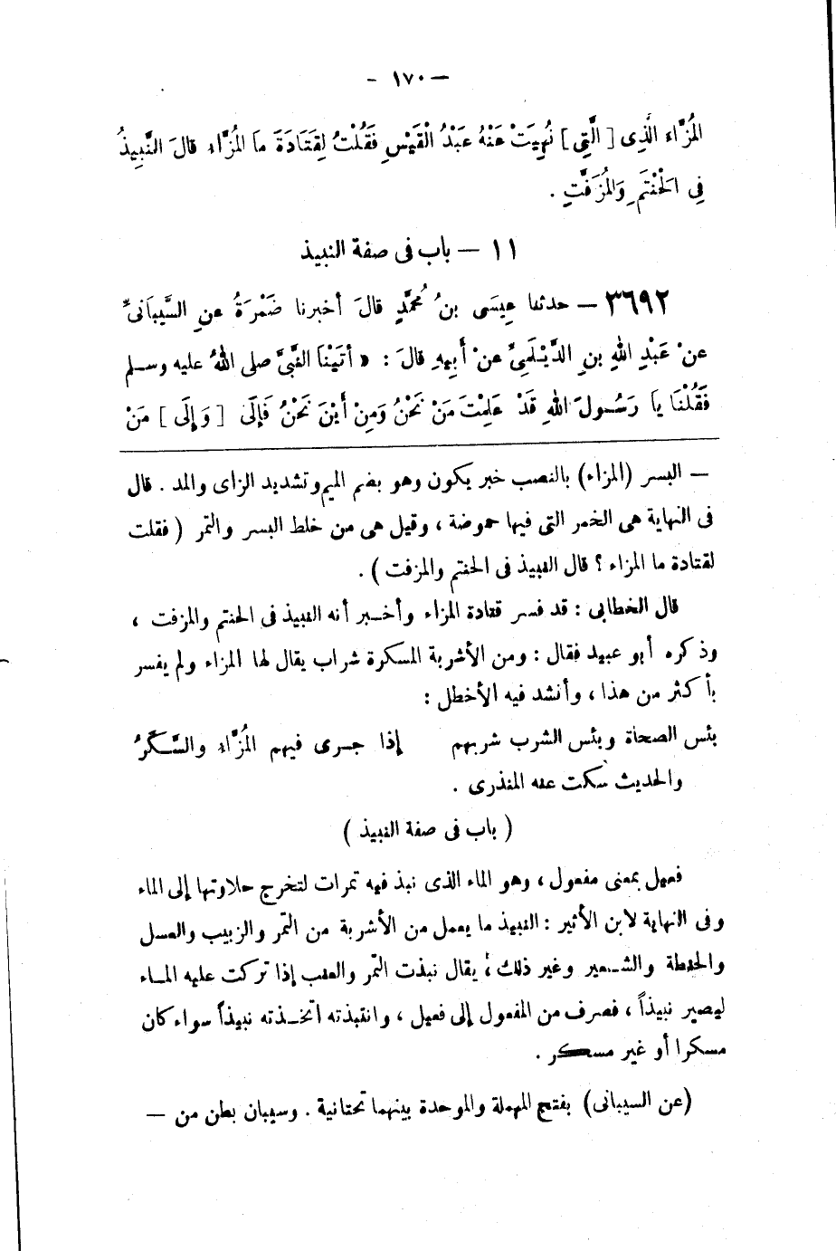قَالَ الْخَطَّابِيُّ : قَدْ فَسَّرَ قَتَادَة الْمُزَّاء وَأَخْبَرَ أَنَّهُ النَّبِيذ فِي الْحَنْتَم وَالْمُزَفَّت ، وَذَكَره أَبُو عُبَيْد قَالَ : وَمِنْ الْأَشْرِبَة الْمُسْكِرَة شَرَابٌ يُقَال لَهَا الْمُزَّاءُ وَلَمْ يُفَسِّرْ بِأَكْثَرَ مِنْ هَذَا ، وَأَنْشَدَ فِي الْأَخْطَل : بِئْسَ الصُّحَاةُ وَبِئْسَ الشُّرْبُ شُرْبُهُمُ إِذَا جَرَى فِيهِمْ الْمُزَّاءُ وَالسَّكَرُ وَالْحَدِيث سَكَتَ عَنْهُ الْمُنْذِرِيُّ .