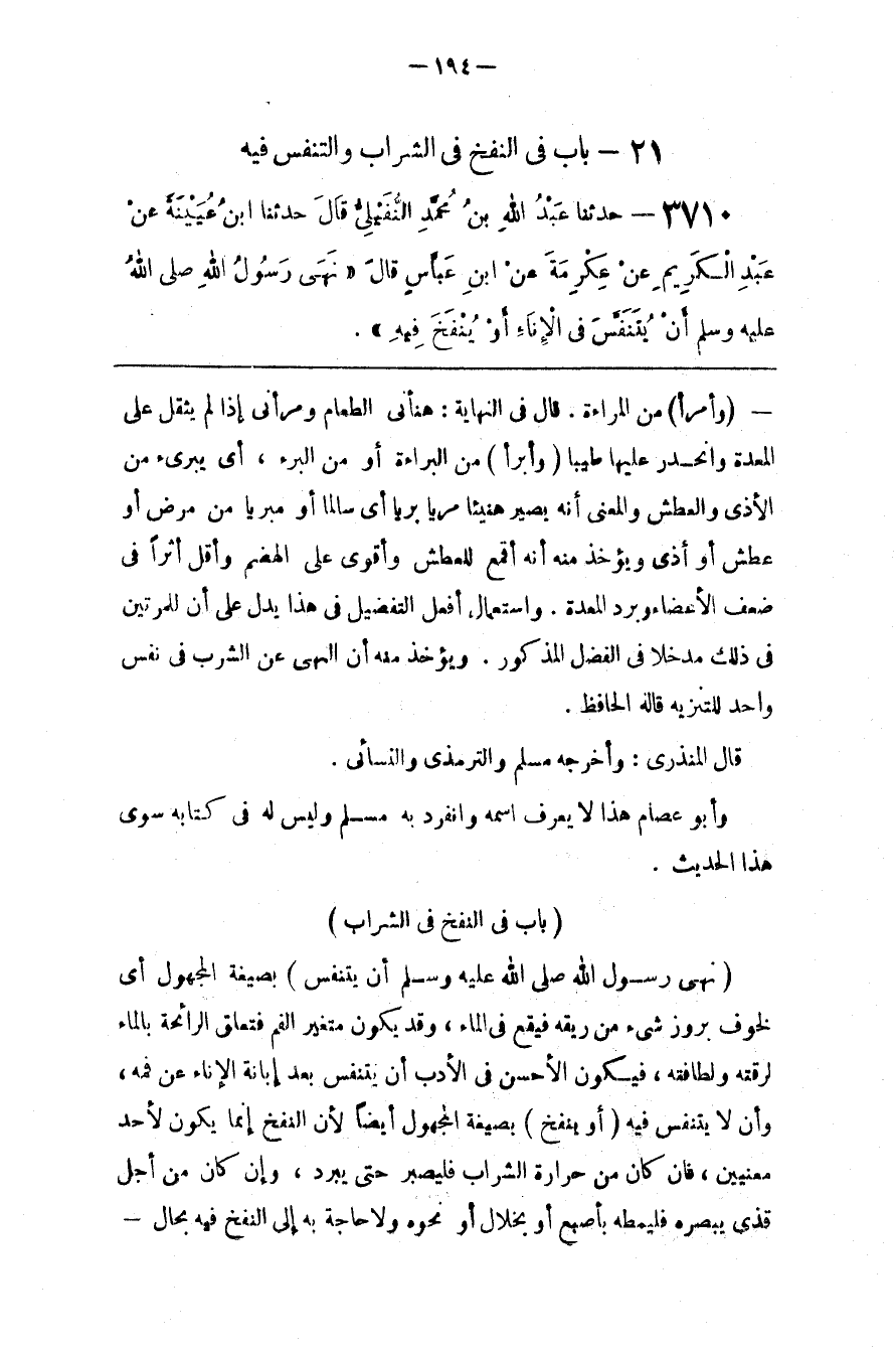 ( نَهَى رَسُول اللَّه صَلَّى اللَّه عَلَيْهِ وَسَلَّمَ أَنْ يُتَنَفَّس )