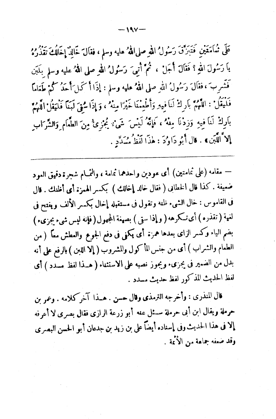 قَالَ الْمُنْذِرِيُّ : وَأَخْرَجَهُ التِّرْمِذِيّ وَقَالَ حَسَن . هَذَا آخِر كَلَامه . وَعُمَر بْن حَرْمَلَة وَيُقَال اِبْن أَبِي حَرْمَلَة سُئِلَ عَنْهُ أَبُو زُرْعَة الرَّازِيّ فَقَالَ بَصْرِيّ لَا أَعْرِفهُ إِلَّا فِي هَذَا الْحَدِيث وَفِي إِسْنَاده أَيْضًا عَلِيّ بْن زَيْد بْن جُدْعَان أَبُو الْحَسَن الْبَصْرِيّ وَقَدْ ضَعَّفَهُ جَمَاعَة مِنْ الْأَئِمَّة .@