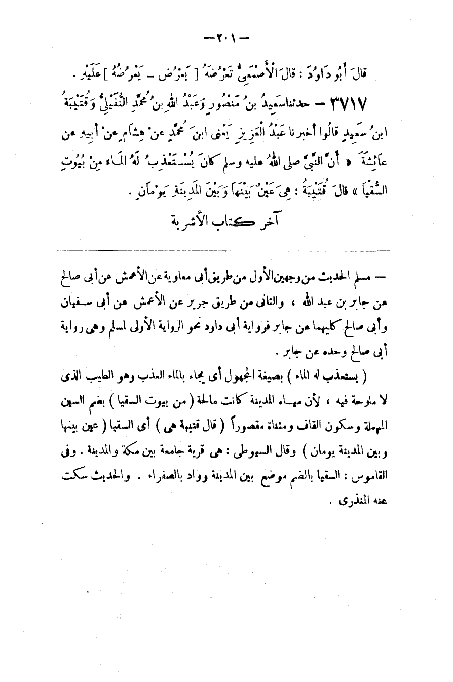 مُسْلِم الْحَدِيث مِنْ وَجْهَيْنِ الْأَوَّل مِنْ طَرِيق أَبِي مُعَاوِيَة عَنْ الْأَعْمَش عَنْ أَبِي صَالِح عَنْ جَابِر بْن عَبْد اللَّه ، وَالثَّانِي مِنْ طَرِيق جَرِير عَنْ الْأَعْمَش عَنْ أَبِي سُفْيَان وَأَبِي صَالِح كِلَيْهِمَا عَنْ جَابِر فَرِوَايَة أَبِي دَاوُدَ نَحْو الرِّوَايَة الْأُولَى لِمُسْلِمٍ وَهِيَ رِوَايَة أَبِي صَالِح وَحْده عَنْ جَابِر .