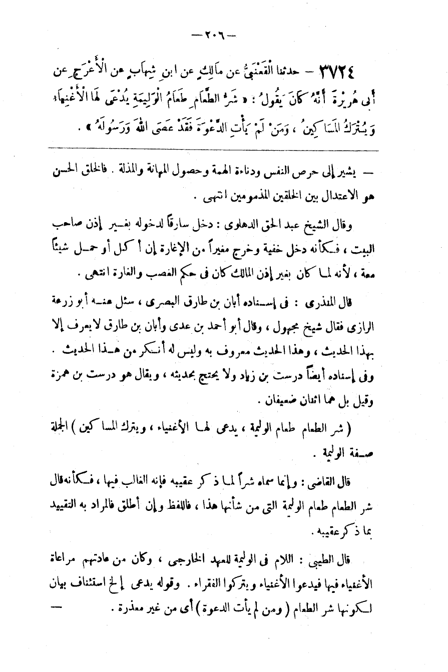 ( شَرّ الطَّعَام طَعَام الْوَلِيمَة ، يُدْعَى لَهَا الْأَغْنِيَاء ، وَيُتْرَك الْمَسَاكِين )