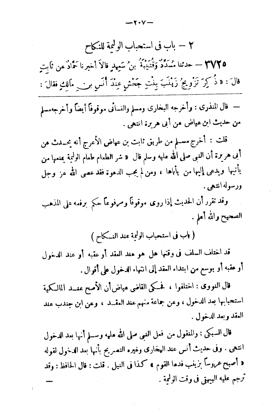 قَالَ السُّبْكِيُّ : وَالْمَنْقُول مِنْ فِعْل النَّبِيّ صَلَّى اللَّه عَلَيْهِ وَسَلَّمَ أَنَّهَا بَعْد الدُّخُول اِنْتَهَى . وَفِي حَدِيث أَنَس عِنْد الْبُخَارِيّ وَغَيْره التَّصْرِيح بِأَنَّهَا بَعْد الدُّخُول لِقَوْلِهِ " أَصْبَحَ عَرُوسًا بِزَيْنَب فَدَعَا الْقَوْم " كَذَا فِي النَّيْل . قُلْت : قَالَ الْحَافِظ : وَقَدْ تَرْجَمَ عَلَيْهِ الْبَيْهَقِيُّ فِي وَقْت الْوَلِيمَةِ .@