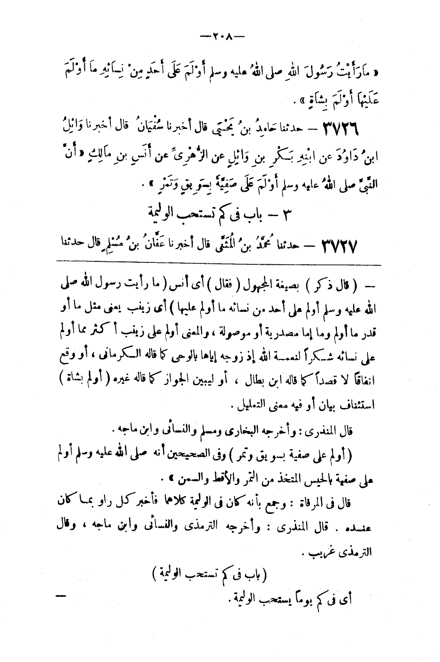 ( مَا رَأَيْت رَسُول اللَّه صَلَّى اللَّه عَلَيْهِ وَسَلَّمَ أَوْلَمَ عَلَى أَحَد مِنْ نِسَائِهِ مَا أَوْلَمَ عَلَيْهَا )