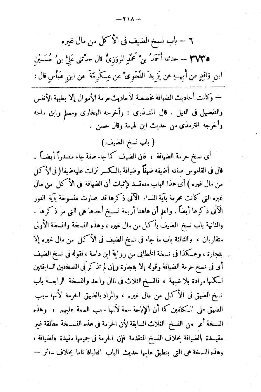 وَكَانَتْ أَحَادِيث الضِّيَافَة مُخَصِّصَة لِأَحَادِيث حُرْمَة الْأَمْوَال إِلَّا بِطِيبَةِ الْأَنْفُس وَالتَّفْصِيل فِي النَّيْل . قَالَ الْمُنْذِرِيُّ : وَأَخْرَجَهُ الْبُخَارِيّ وَمُسْلِم وَابْن مَاجَهْ وَأَخْرَجَهُ التِّرْمِذِيّ مِنْ حَدِيث اِبْن لَهِيعَة وَقَالَ حَسَن .