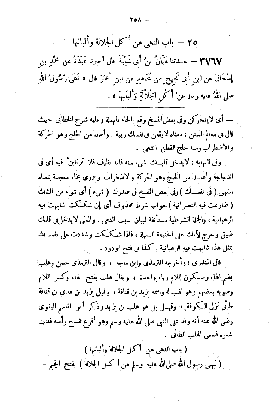 ( نَهَى رَسُول اللَّه صَلَّى اللَّه عَلَيْهِ وَسَلَّمَ عَنْ أَكْل الْجَلَّالَة )