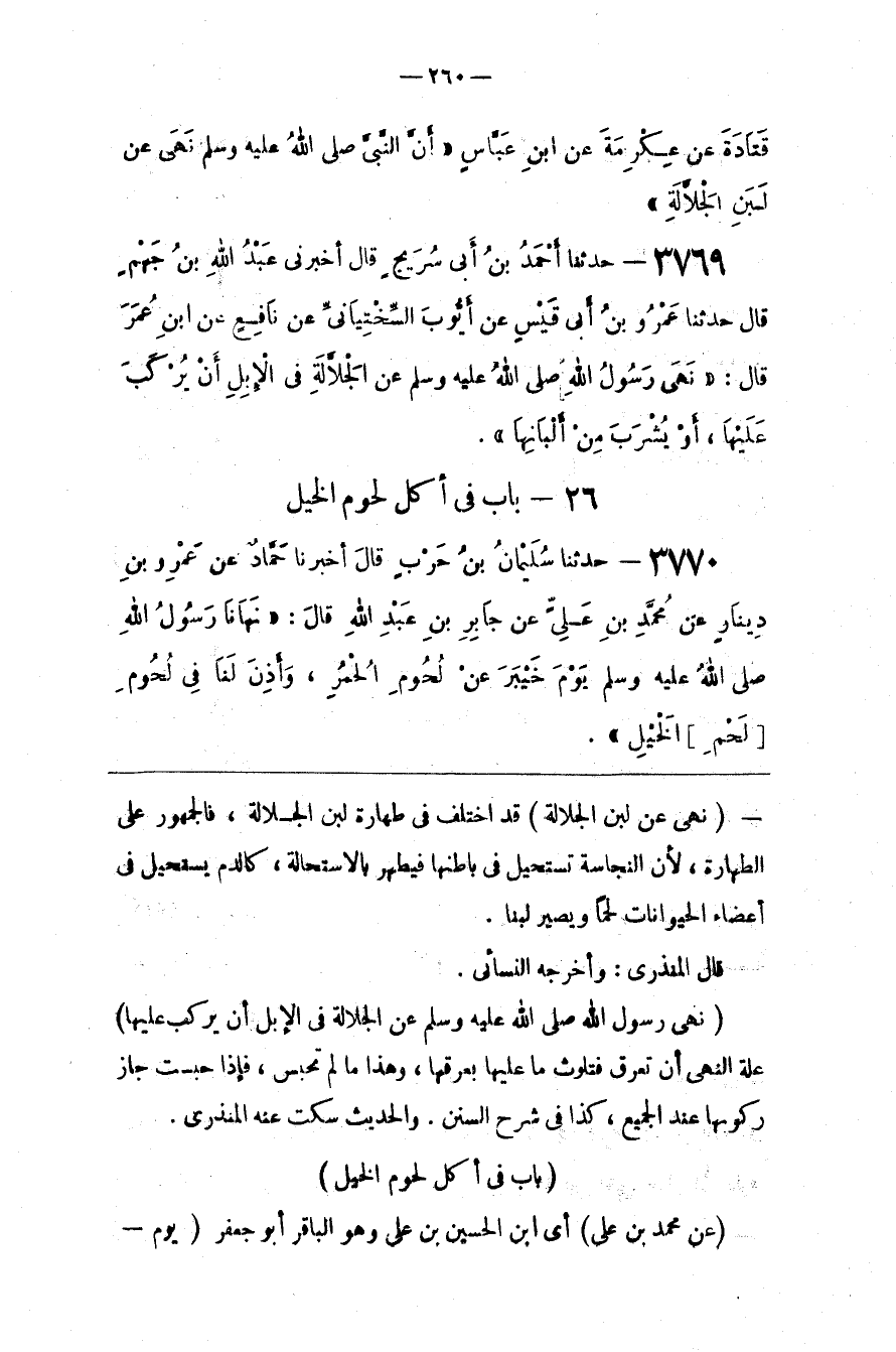 ( نَهَى رَسُول اللَّه صَلَّى اللَّه عَلَيْهِ وَسَلَّمَ عَنْ الْجَلَّالَة فِي الْإِبِل أَنْ يُرْكَب عَلَيْهَا )