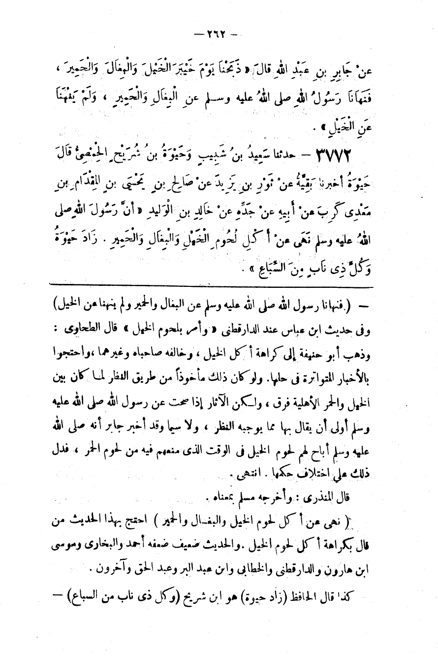 ( نَهَى عَنْ أَكْل لُحُوم الْخَيْل وَالْبِغَال وَالْحَمِير )