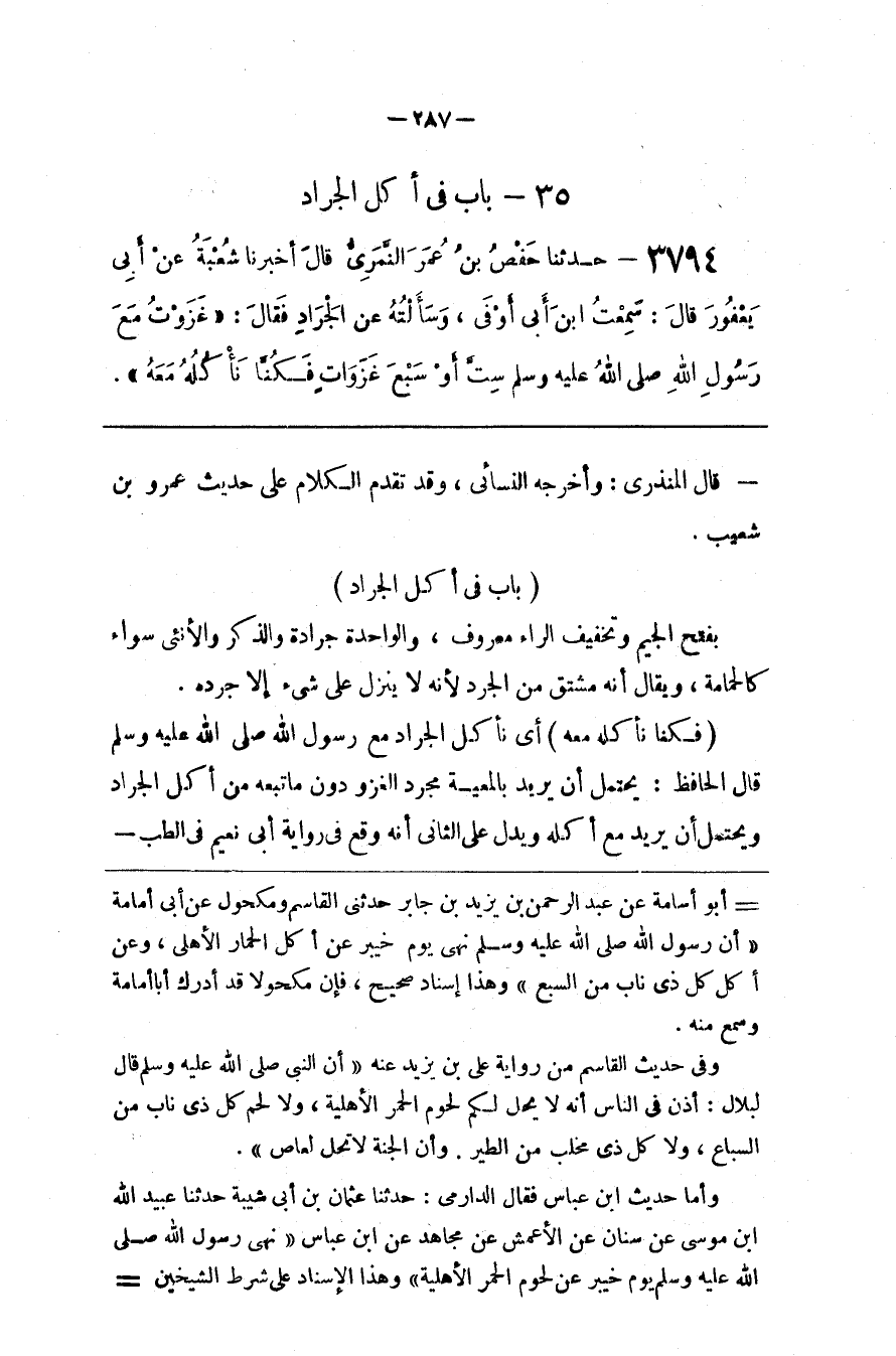 أبو أسامة عن عبد الرحمن بن يزيد بن جابر حدثني القاسم ومكحول عن أبي أمامة أن رسول الله صلى الله عليه و سلم نهى يوم خيبر عن أكل الحمار الأهلي وعن أكل كل ذي ناب من السبع وهذا إسناد صحيح فإن مكحولا قد أدرك أبا أمامة وسمع منه