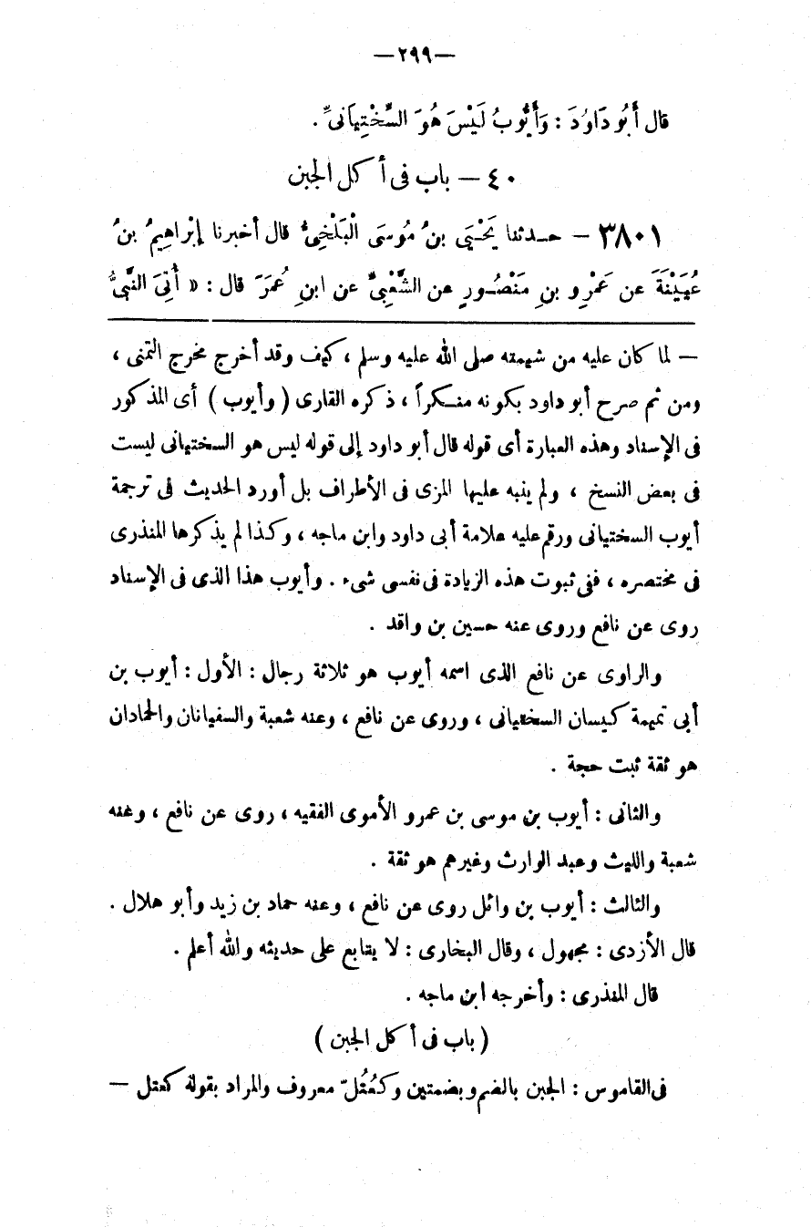 وَالرَّاوِي عَنْ نَافِع الَّذِي اِسْمه أَيُّوب هُوَ ثَلَاثَة رِجَال : الْأَوَّل : أَيُّوب بْن أَبِي تَمِيمَة كِيسَان السِّخْتِيَانِيُّ ، وَرَوَى عَنْ نَافِع ، وَعَنْهُ شُعْبَة وَالسُّفْيَانَانِ وَالْحَمَّادَانِ هُوَ ثِقَة ثَبْتٌ حُجَّة