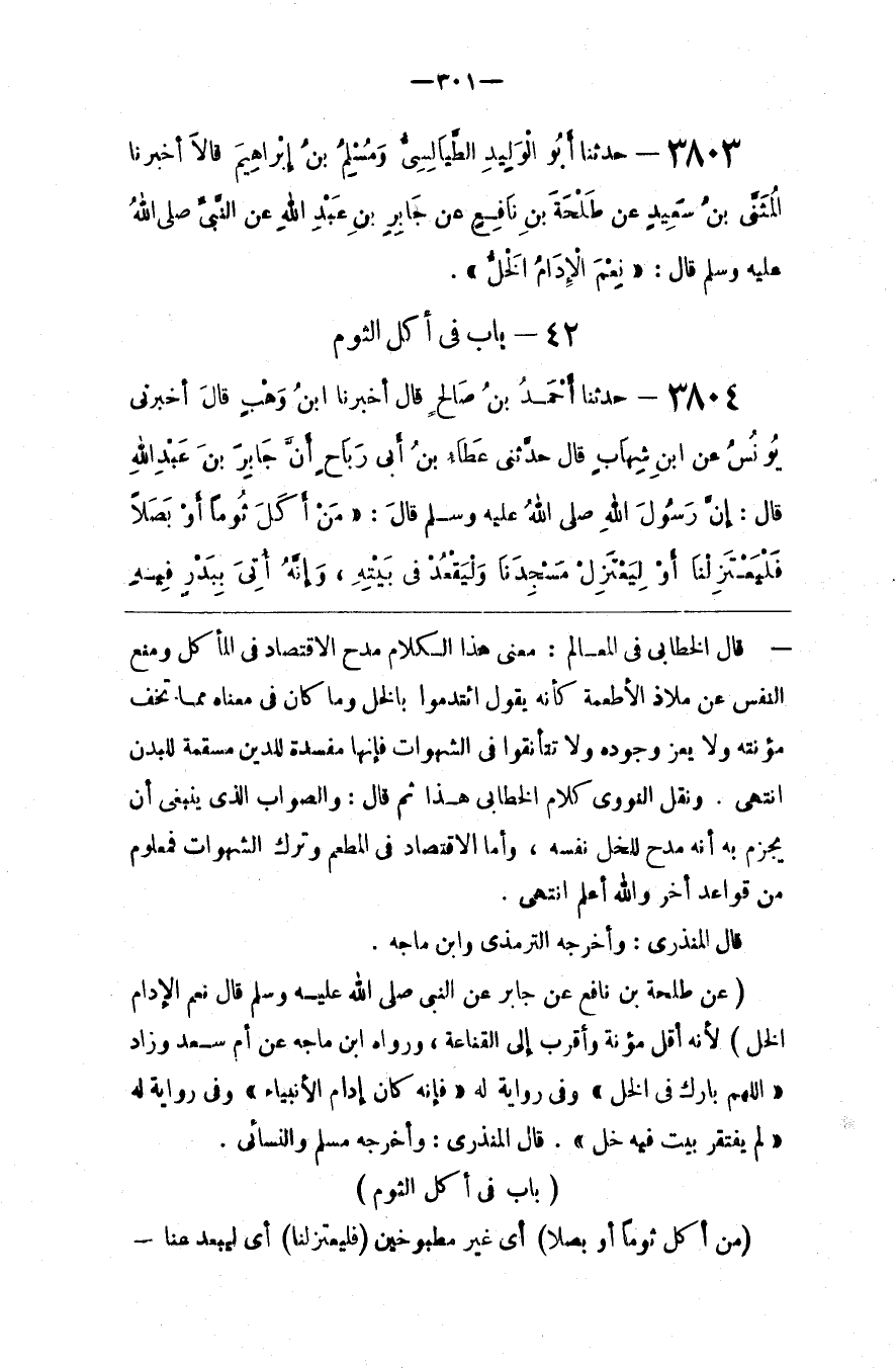 ( عَنْ طَلْحَة بْن نَافِع عَنْ جَابِر عَنْ النَّبِيّ صَلَّى اللَّه عَلَيْهِ وَسَلَّمَ قَالَ نِعْمَ الْإِدَامُ الْخَلُّ )