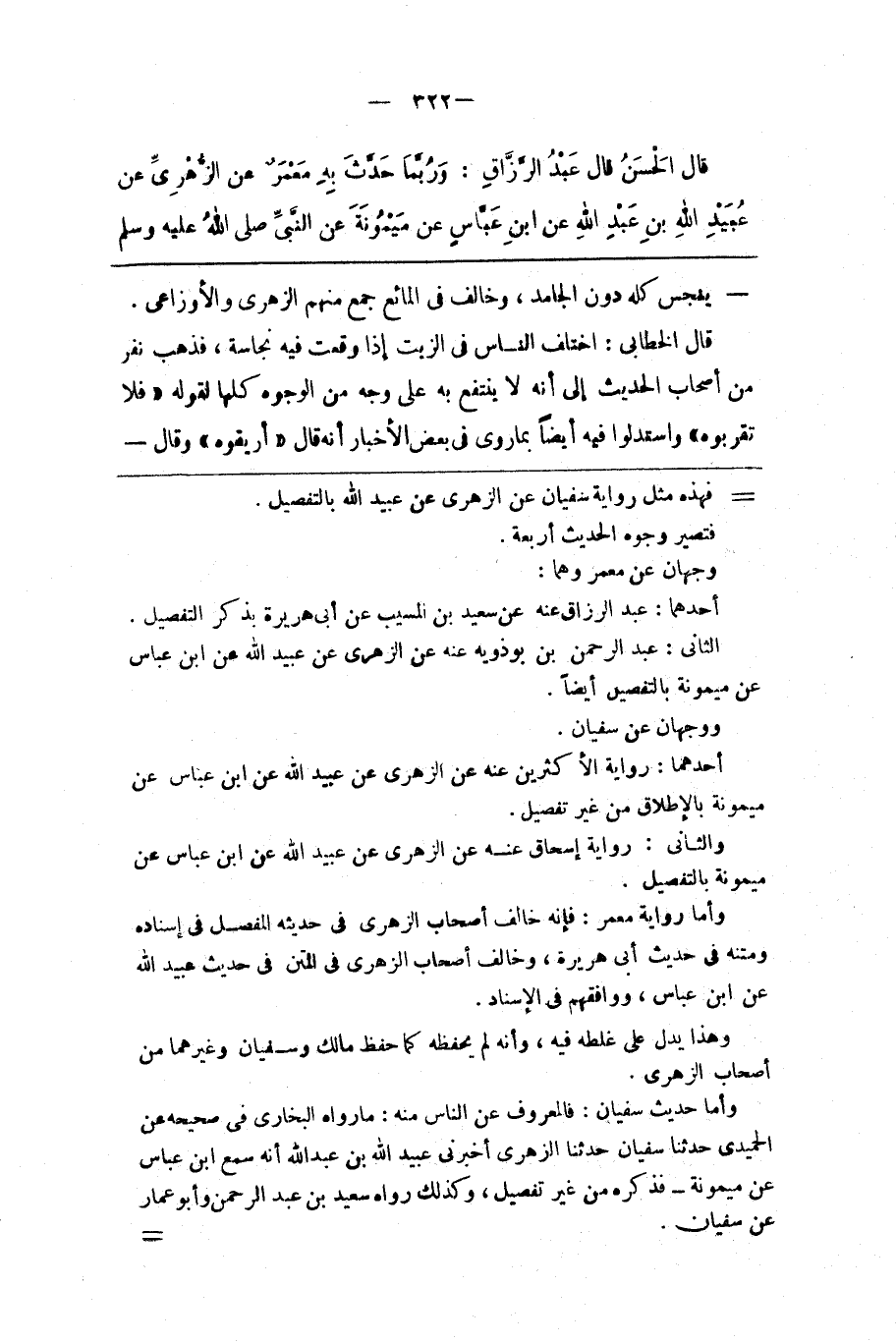 وأما حديث سفيان فالمعروف عن الناس منه ما رواه البخاري في صحيحه عن الحميدي حدثنا سفيان حدثنا الزهري أخبرني عبيد الله بن عبد الله أنه سمع ابن عباس عن ميمونة فذكره من غير تفصيل وكذلك رواه سعيد بن عبدالرحمن وأبو عمار عن سفيان