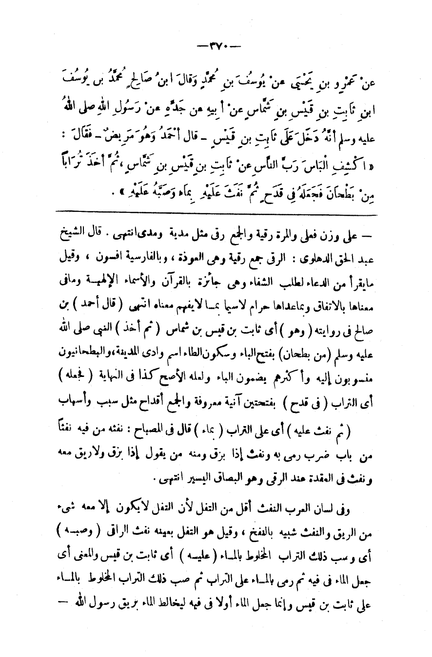 عَلَى وَزْن فُعْلَى وَالْمَرَّة رُقْيَة وَالْجَمْع رُقَى مِثْل مُدْيَة وَمُدَى اِنْتَهَى . قَالَ الشَّيْخ عَبْد الْحَقّ الدَّهْلَوِيُّ : الرُّقَى جَمْع رُقْيَة وَهِيَ الْعُوذَة ، وَبِالْفَارِسِيَّةِ أفسون ، وَقِيلَ مَا يُقْرَأ مِنْ الدُّعَاء لِطَلَبِ الشِّفَاء وَهِيَ جَائِزَة بِالْقُرْآنِ وَالْأَسْمَاء الْإِلَهِيَّة وَمَا فِي مَعْنَاهَا بِالِاتِّفَاقِ وَبِمَا عَدَاهَا حَرَام لَا سِيَّمَا بِمَا لَا يُفْهَم مَعْنَاهُ اِنْتَهَى .
