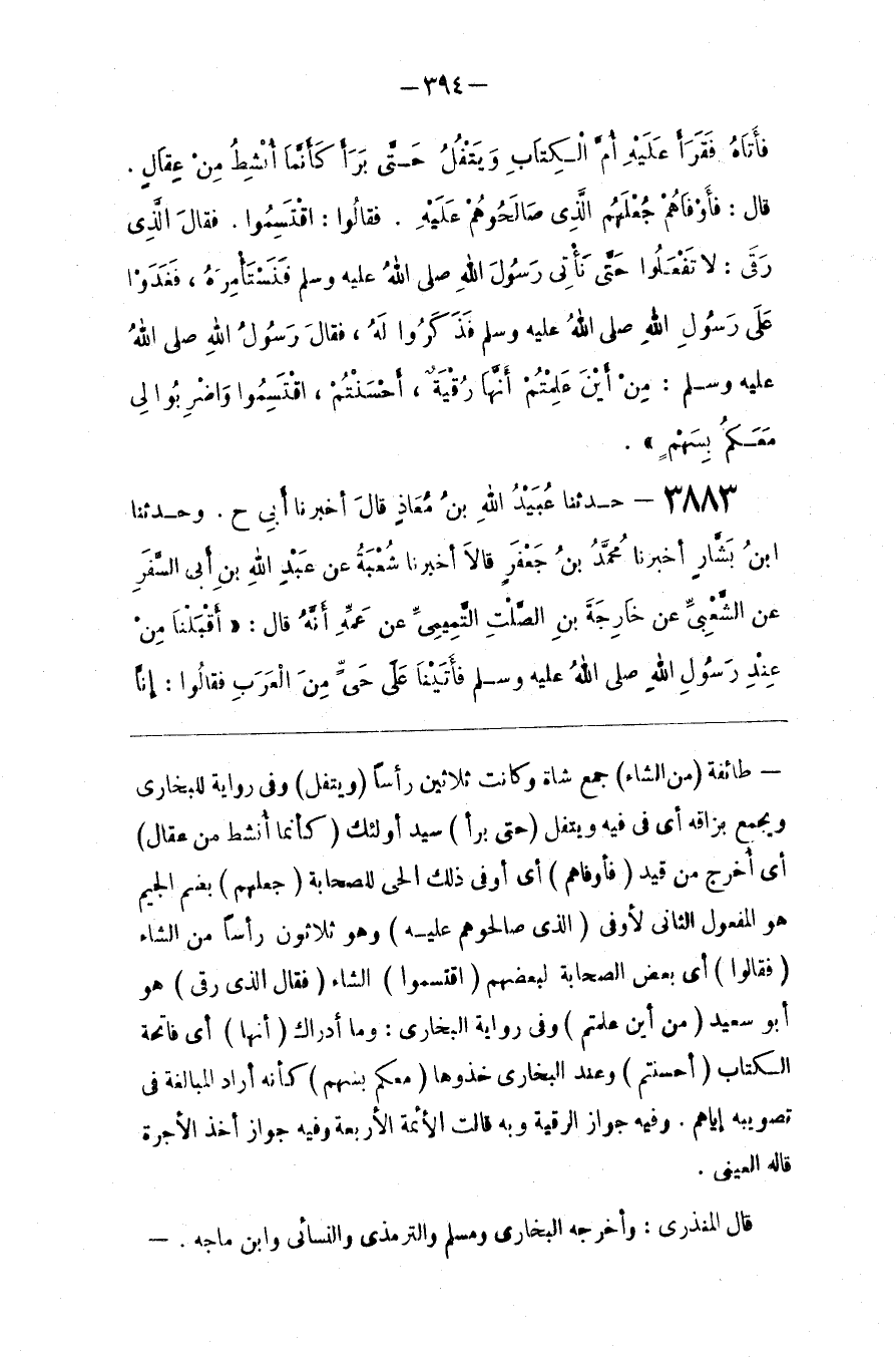 كَأَنَّهُ أَرَادَ الْمُبَالَغَة فِي تَصْوِيبه إِيَّاهُمْ . وَفِيهِ جَوَاز الرُّقْيَة وَبِهِ قَالَتْ الْأَئِمَّة الْأَرْبَعَة وَفِيهِ جَوَاز أَخْذ الْأُجْرَة قَالَهُ الْعَيْنِيّ .