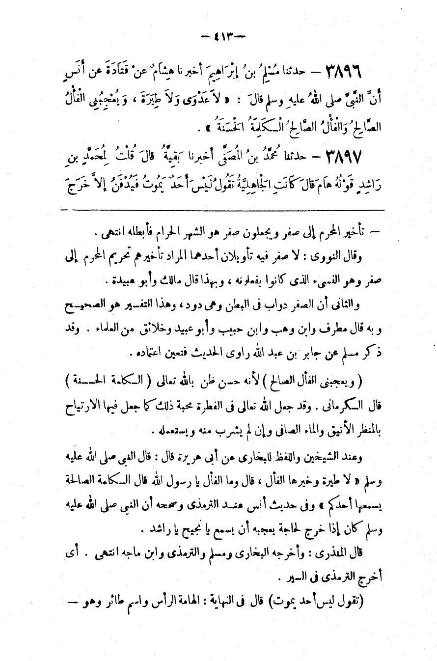 قَالَ النَّوَوِيّ : لَا صَفَر فِيهِ تَأْوِيلَانِ أَحَدهمَا الْمُرَاد تَأْخِيرهمْ تَحْرِيم الْمُحَرَّم إِلَى صَفَر وَهُوَ النَّسِيء الَّذِي كَانُوا يَفْعَلُونَهُ ، وَبِهَذَا قَالَ مَالِك وَأَبُو عُبَيْدَة .