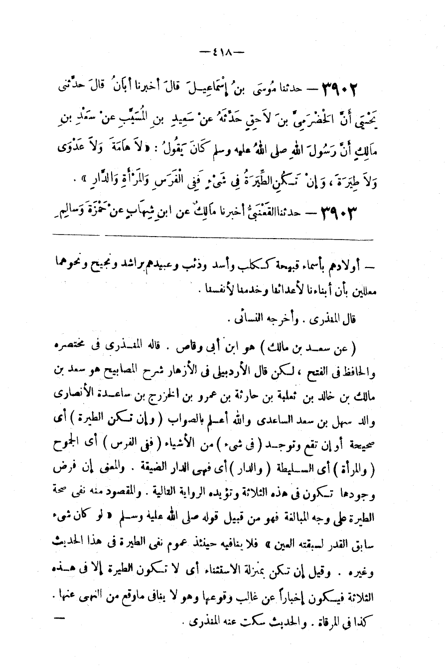 وَالْمَقْصُود مِنْهُ نَفْي صِحَّة الطِّيَرَة عَلَى وَجْه الْمُبَالَغَة فَهُوَ مِنْ قَبِيل قَوْله صَلَّى اللَّه عَلَيْهِ وَسَلَّمَ " لَوْ كَانَ شَيْءٌ سَابَقَ الْقَدَرَ لَسَبَقَتْهُ الْعَيْنُ " فَلَا يُنَافِيه حِينَئِذٍ عُمُوم نَفْي الطِّيَرَة فِي هَذَا الْحَدِيث وَغَيْره . وَقِيلَ إِنْ تَكُنْ بِمَنْزِلَةِ الِاسْتِثْنَاء أَيْ لَا تَكُون الطِّيَرَة إِلَّا فِي هَذِهِ الثَّلَاثَة فَيَكُون إِخْبَارًا عَنْ غَالِب وُقُوعهَا وَهُوَ لَا يُنَافِي مَا وَقَعَ مِنْ النَّهْي عَنْهَا . كَذَا فِي الْمِرْقَاة . وَالْحَدِيث سَكَتَ عَنْهُ الْمُنْذِرِيُّ .@
