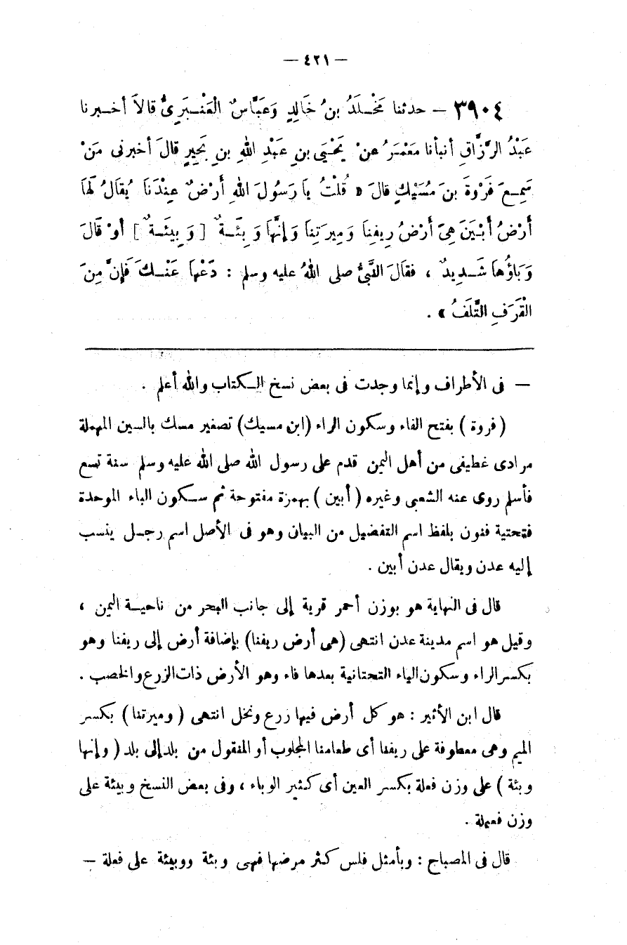 قَالَ فِي النِّهَايَة هُوَ بِوَزْنِ أَحْمَر قَرْيَة إِلَى جَانِب الْبَحْر مِنْ نَاحِيَة الْيَمَن ، وَقِيلَ هُوَ اِسْم مَدِينَة عَدَن اِنْتَهَى