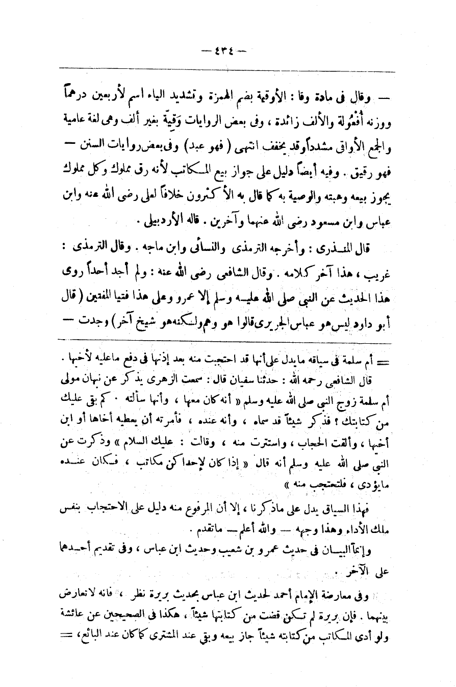 كم بقي عليك من كتابتك فذكر شيئا قد سماه وأنه عنده فأمرته أن يعطيه أخاها أو ابن أخيها وألقت الحجاب واستترت منه وقالت عليك السلام وذكرت عن النبي أنه قال إذا كان لأحداكن مكاتب فكان عنده ما يؤدي فلتحتجب منه فهذا السياق يدل على ما ذكرنا إلا أن المرفوع منه دليل على الاحتجاب بنفس ملك الأداء وهذا وجهه والله أعلم ماتقدم