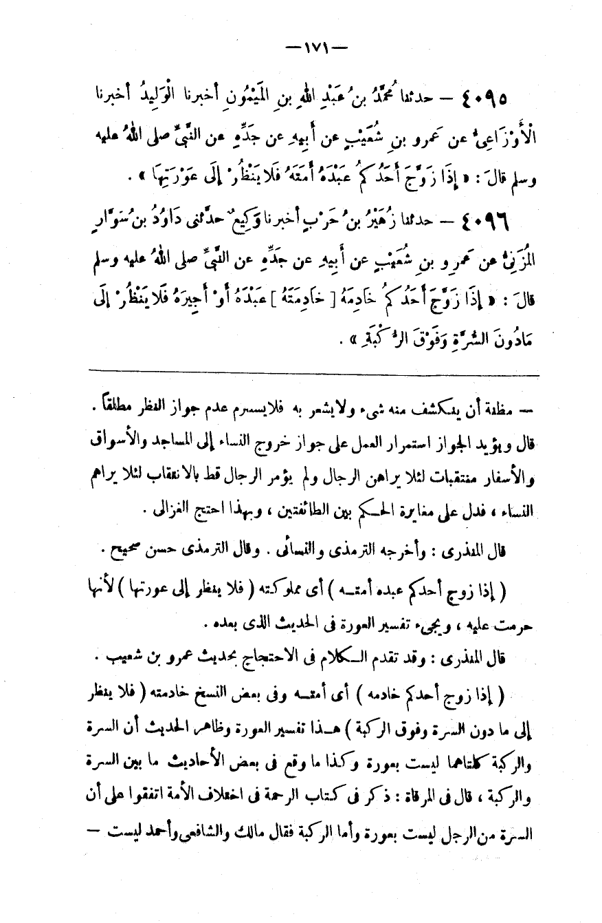 قَالَ الْمُنْذِرِيُّ : وَقَدْ تَقَدَّمَ الْكَلَام فِي الِاحْتِجَاج بِحَدِيثِ عَمْرو بْن شُعَيْب .