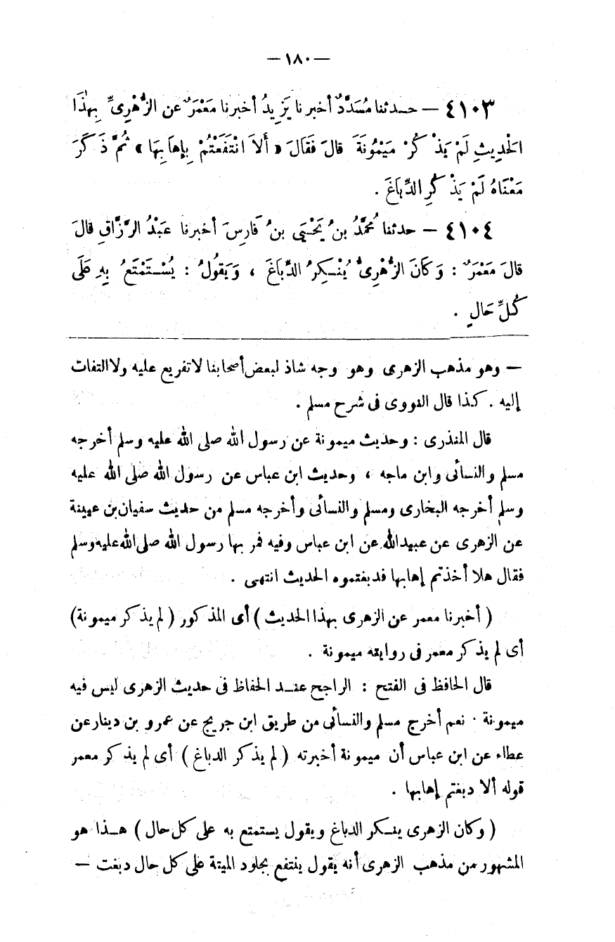 ( وَكَانَ الزُّهْرِيّ يُنْكِر الدِّبَاغ وَيَقُول يُسْتَمْتَع بِهِ عَلَى كُلّ حَال )
