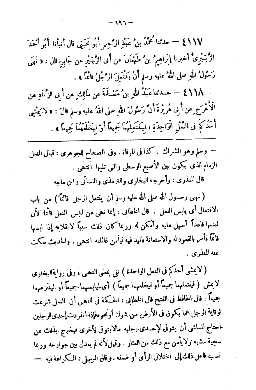 ( لَا يَمْشِي أَحَدكُمْ فِي النَّعْل الْوَاحِدَة )