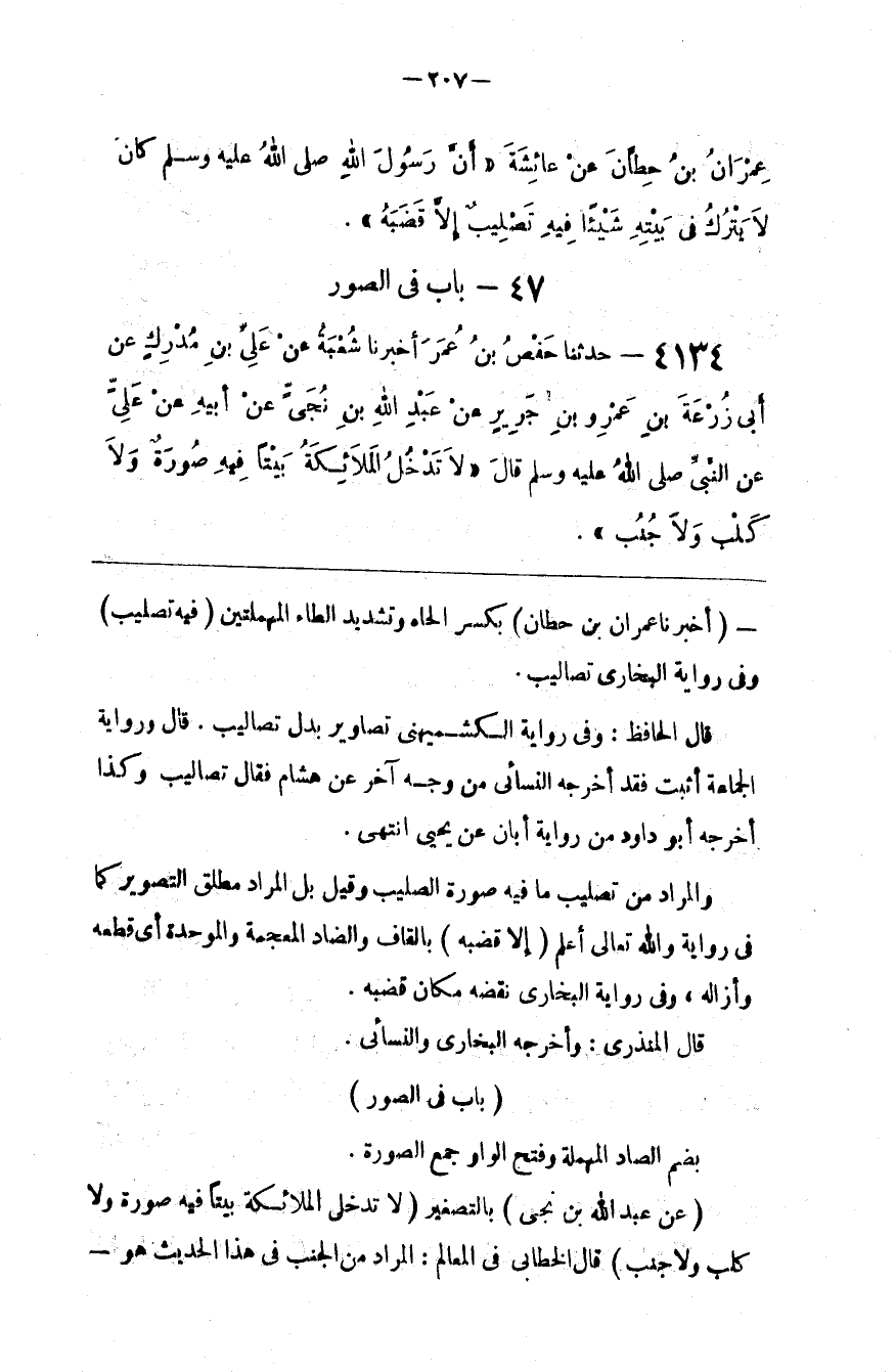 ( لَا تَدْخُل الْمَلَائِكَة بَيْتًا فِيهِ صُورَة وَلَا كَلْب وَلَا جُنُب )