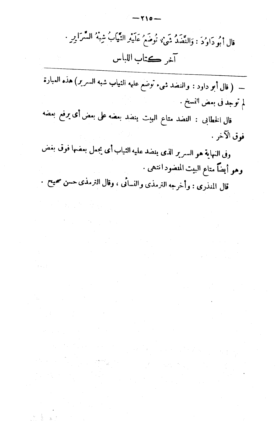 ( قَالَ أَبُو دَاوُدَ : وَالنَّضَد شَيْء تُوضَع عَلَيْهِ الثِّيَاب شِبْه السَّرِير )