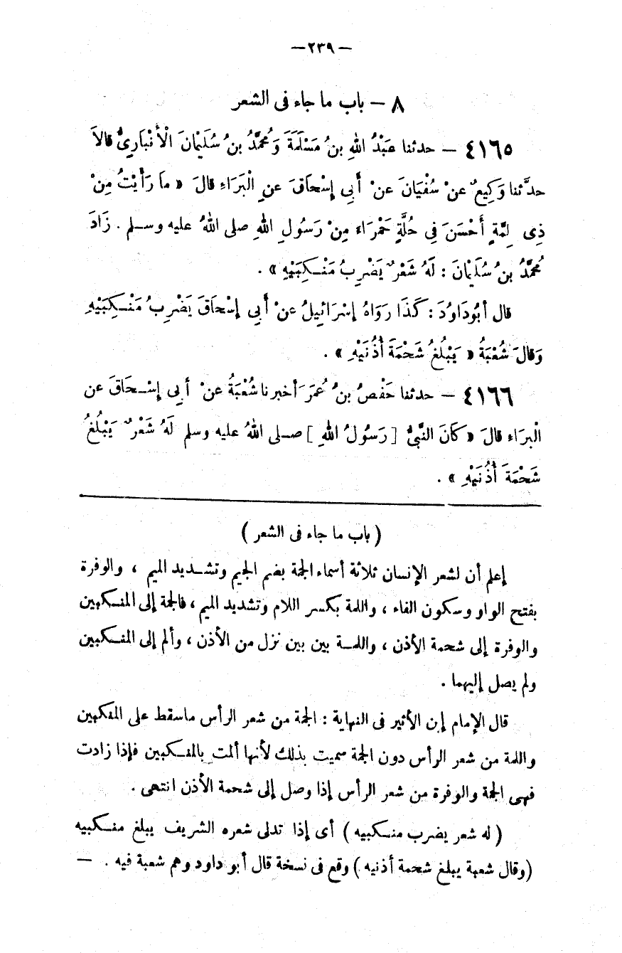 اِعْلَمْ أَنَّ لِشَعْرِ الْإِنْسَان ثَلَاثَة أَسْمَاء الْجُمَّة بِضَمِّ الْجِيم وَتَشْدِيد الْمِيم ، وَالْوَفْرَة بِفَتْحِ الْوَاو وَسُكُون الْفَاء ، وَاللِّمَّة بِكَسْرِ اللَّام وَتَشْدِيد الْمِيم ، فَالْجُمَّة إِلَى الْمَنْكِبَيْنِ وَالْوَفْرَة إِلَيَّ شَحْمَة الْأُذُن ، واللمة بَيْن بَيْن نَزَلَ مِنْ الْأُذُن ، وَأَلَمَّ إِلَى الْمَنْكِبَيْنِ وَلَمْ يَصِل إِلَيْهِمَا .